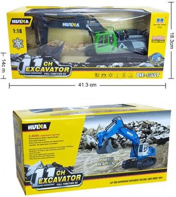 Металлический ковш. Небольшой экскаватор для начинающих в масштабе 1:24. 11 каналов управления. Реалистичный внешний вид с сохранением деталей кабины и кузова. Яркая светодиодная подсветка.