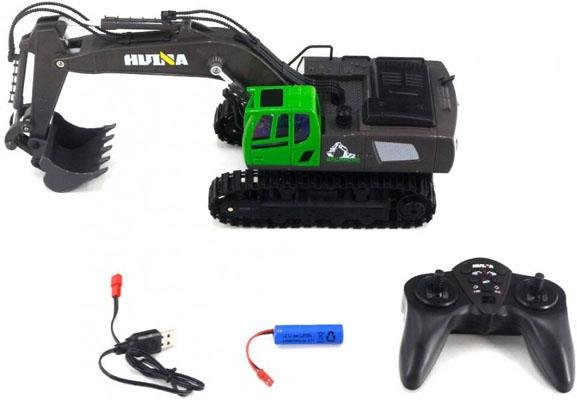 Маленький экскаватор на пульте с дистанционным управлением для детей с металлическим ковшом. Многоканальная аппаратура управления идет в комплекте и позволяет управлять стрелой экскаватора, чтобы освоить азы строительного дела. 11 каналов управления сделают процесс удобным и простым. Игрушка умеет ездить вперед/назад и разворачиваться вокруг своей оси. Играть можно на улице в сухую погоду. Вы запросто сможете выкопать яму, разбить сухой грунт и перетащить ветки и камни. Контроллер имеет 2 режима управления. Будет отличным дополнением, если у вас уже есть самосвал с кузовом для загрузки.