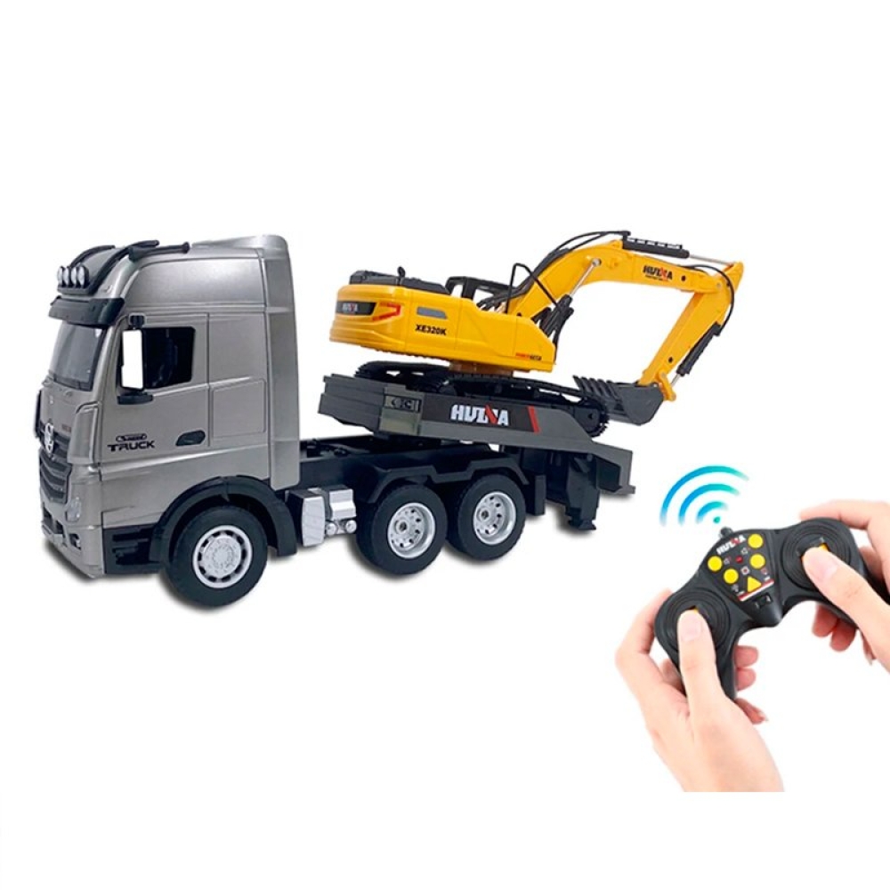 Радиоуправляемый экскаватор и грузовик HuiNa Toys масштаб 1/18 2.4G 9CH - HN1522 (свет, звук)