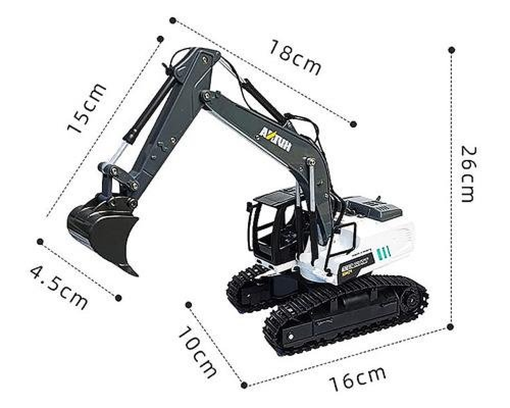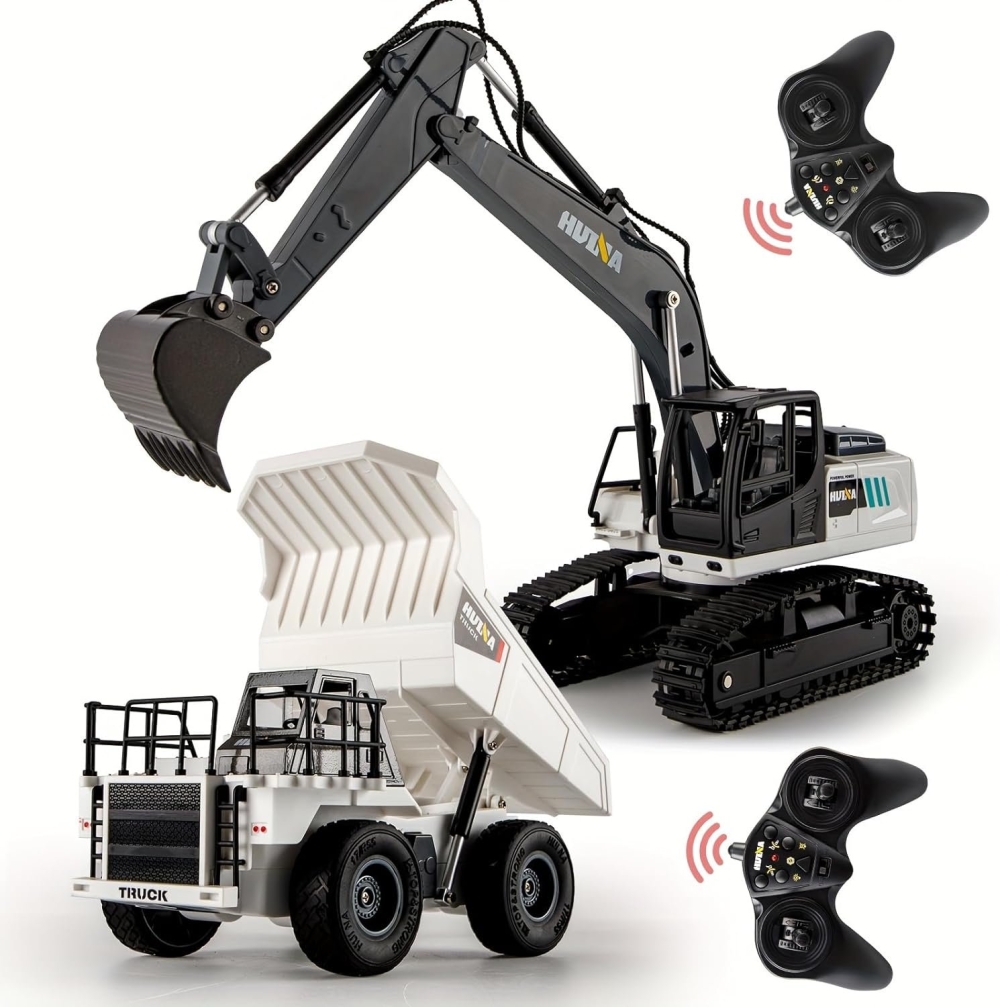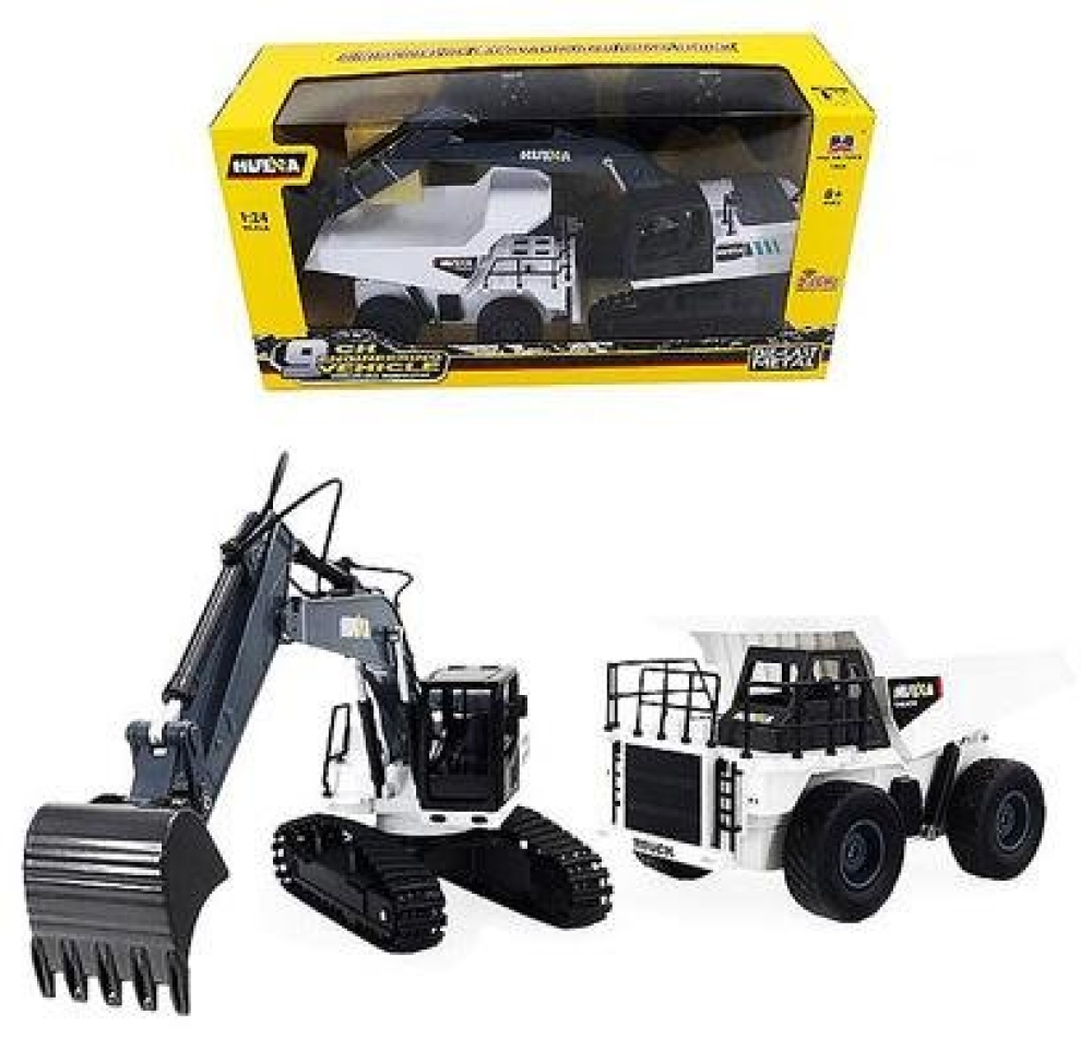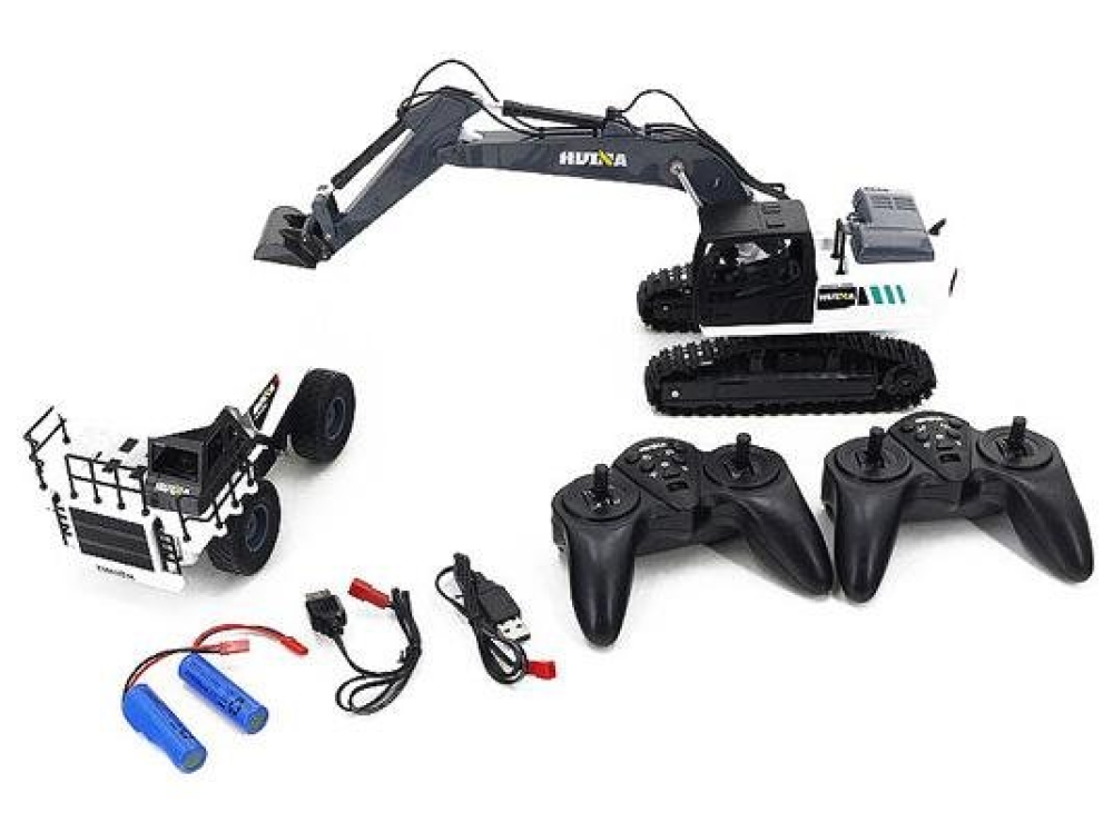 Радиоуправляемый набор Huina HN1559 (экскаватор и самосвал) 1:24 – это детский набор 2-в-1 со строительной техникой. Подходит для детей от 8 лет, для детей помладше (4+) игру с радиоуправляемыми моделями лучше проводить с родителями или под их наблюдением, заряжать аккумуляторы также следует под их присмотром. Обе машинки - белого цвета с черными элементами.