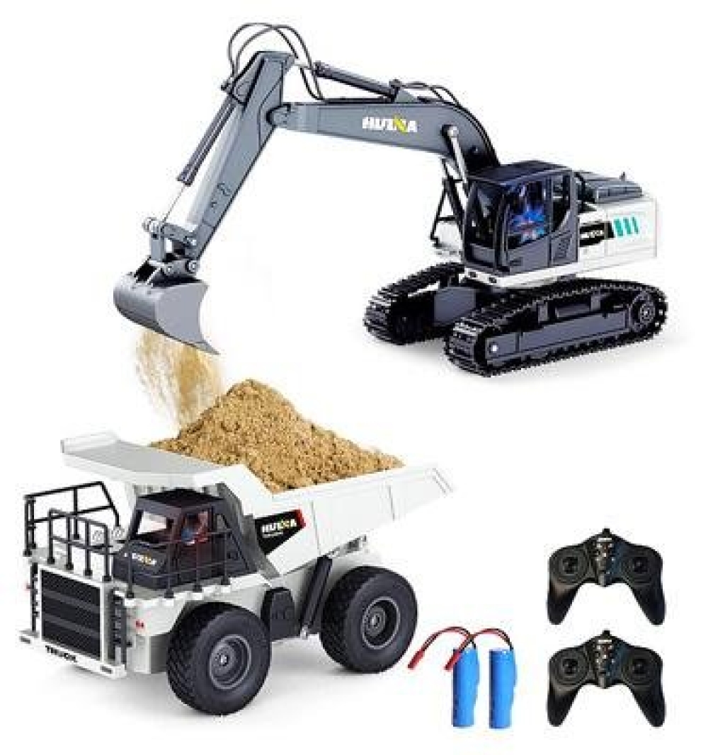 Радиоуправляемый экскаватор и самосвал Huina (свет, звук, акб, 1:24) - HN1559