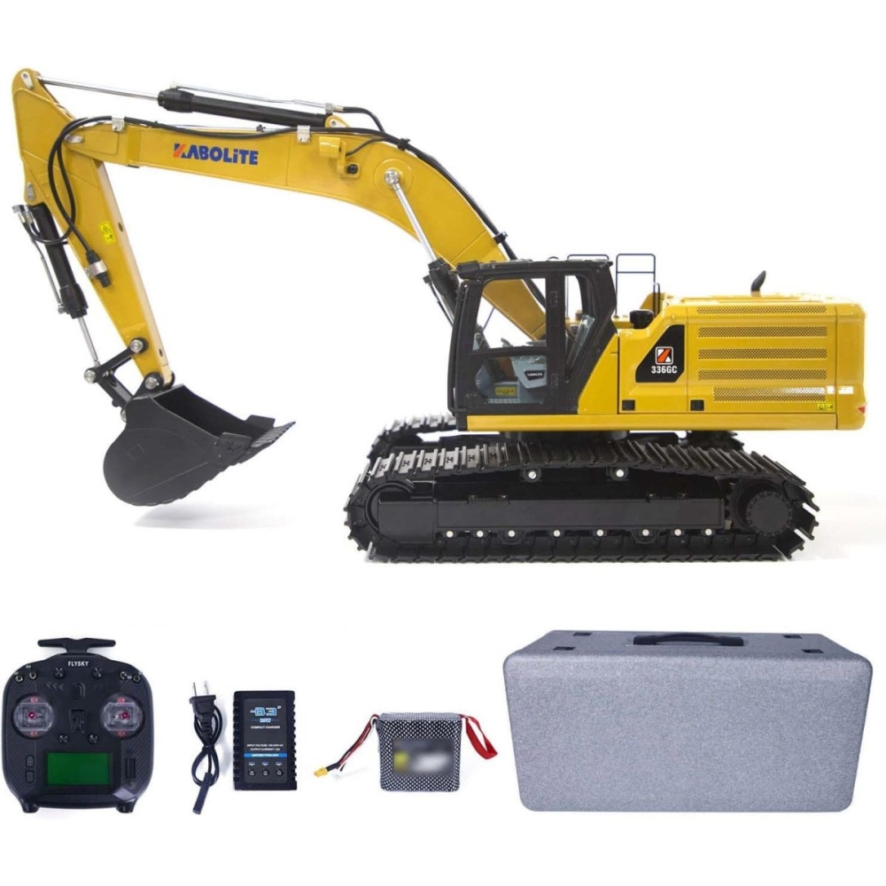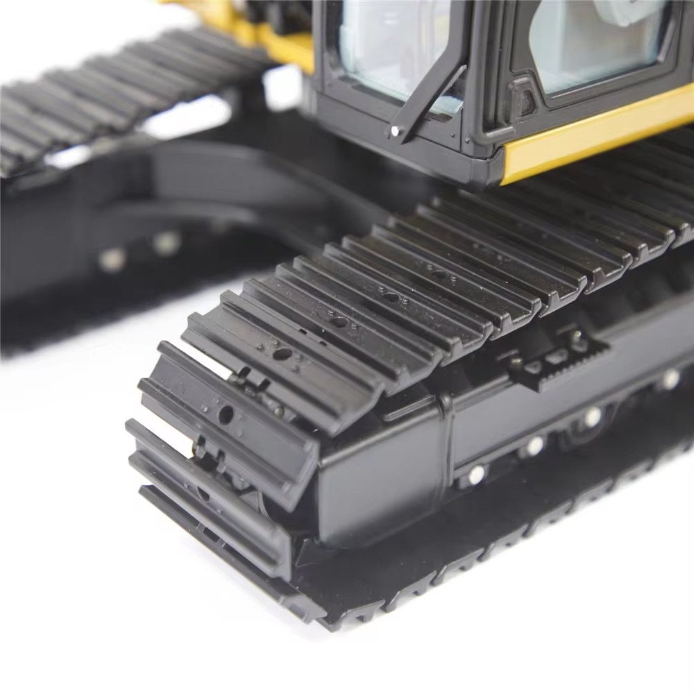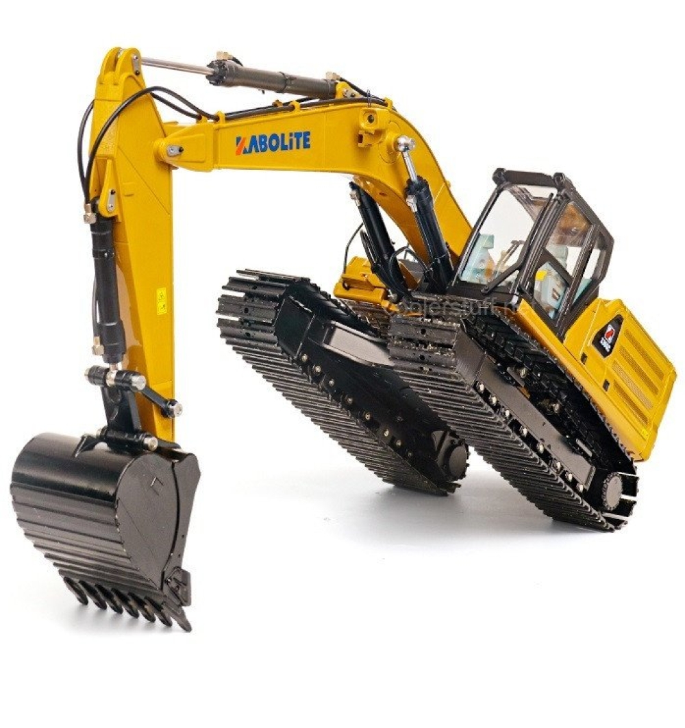 Конструкция экскаватора выполнена из металла. Этим экскаватором можно копать не только рыхлую землю, но и грунт, ведь его ковш тоже металлический. Экскаватор имеет гусеничный привод, что позволяет эксплуатировать его на разных типах поверхностей. Модель может разворачиваться на одном месте на 360 градусов в ограниченном пространстве. Кабина экскаватора поворачивается во все стороны как у настоящего, независимо от гусеничного шасси. Стрела и ковш экскаватора полностью функциональны, стрела опускается, поднимается и сгибается, а ковш может зачерпывать грунт или песок.