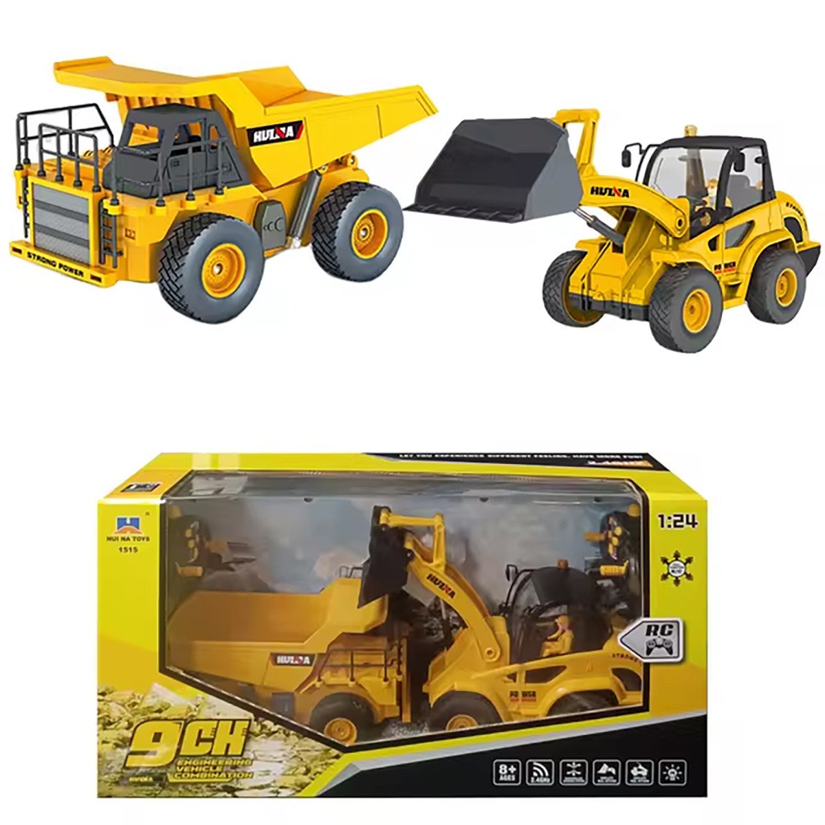 Радиоуправляемый набор бульдозер-погрузчик и самосвал Huina (свет, звук, акб, 1:24) - HN1515 - это набор строительных машин с дистанционным управлением для детей включает в себя бульдозер-погрузчик с дистанционным управлением и перезаряжаемой батареей, а также карьерный самосвал с дистанционным управлением и перезаряжаемой батареей. Кроме того, в этот набор входят два пульта дистанционного управления и два зарядных кабеля. Ваш ребенок достоин двойного удовольствия от игры с друзьями.