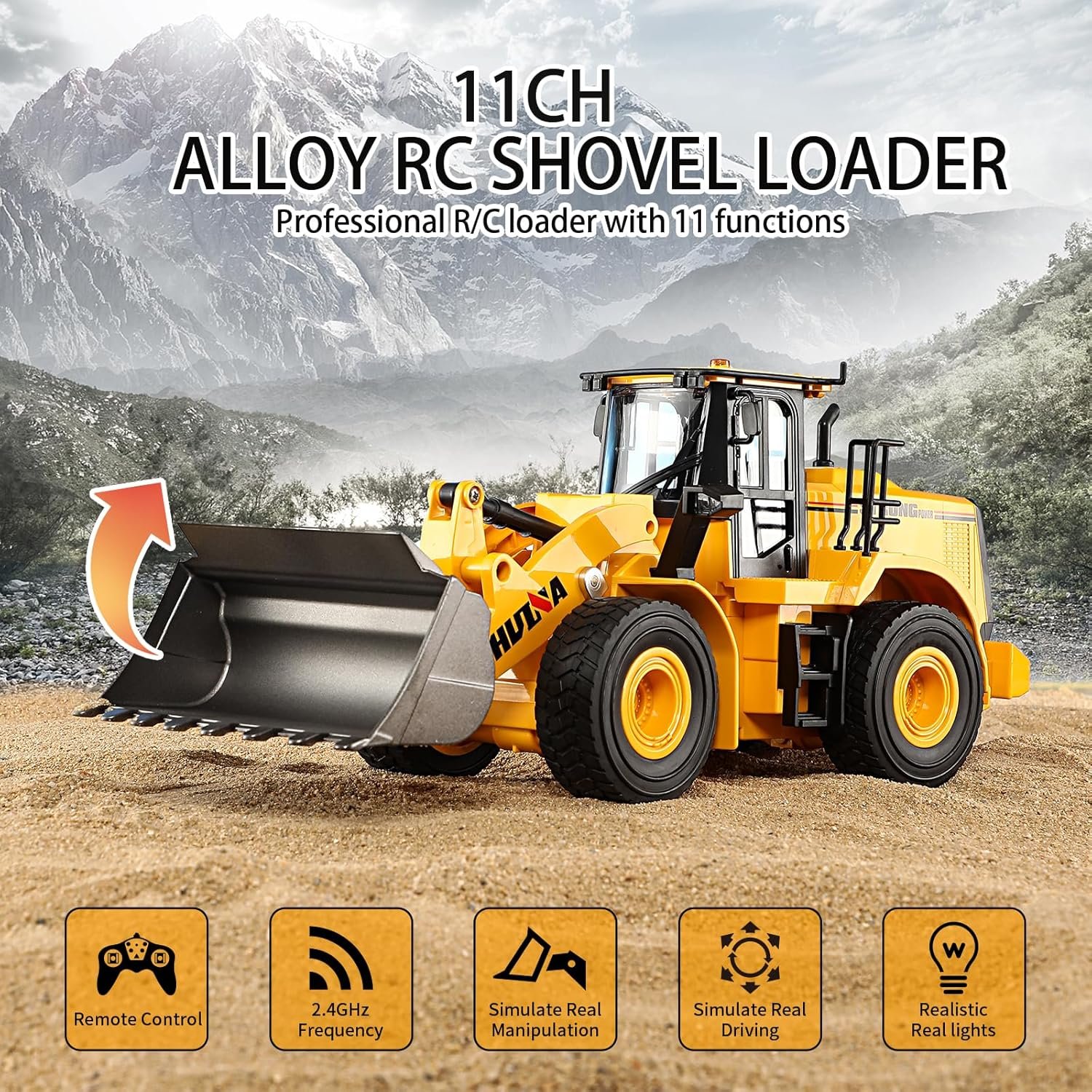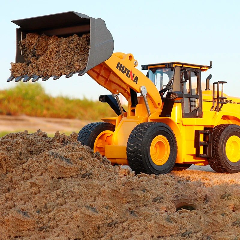 Модель трактора бульдозера с подвижным ковшом. Машинка имеет резиновые покрышки колес и подходит для игры как дома, так и на улице. Кабина оснащается прозрачными стеклами, поэтому можно заглянуть внутрь и рассмотреть водительское место, которое выполнено с высокой детализацией. Игра сопровождается световыми и звуковыми эффектами. С помощью ковша можно загружать самосвалы или расчищать дорогу. Модель выполнена из пластика и металла. Управлять игрушкой можно на расстоянии до 50 метров.