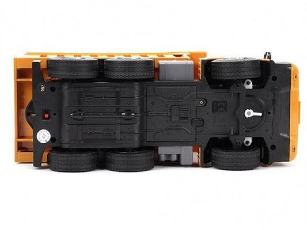 Карьерный самосвал с резиновыми колесами способен перевозить значительные объемы груза, например, песок или щебень. Подъем кузова для выгрузки груза осуществляется дистанционно с пульта управления. Кстати загрузить кузов можно с помощью экскаватора из этой же серии строительной техники. Самосвал ездит во всех направлениях. Модель проста в управлении и подойдет как детям, так и взрослым.