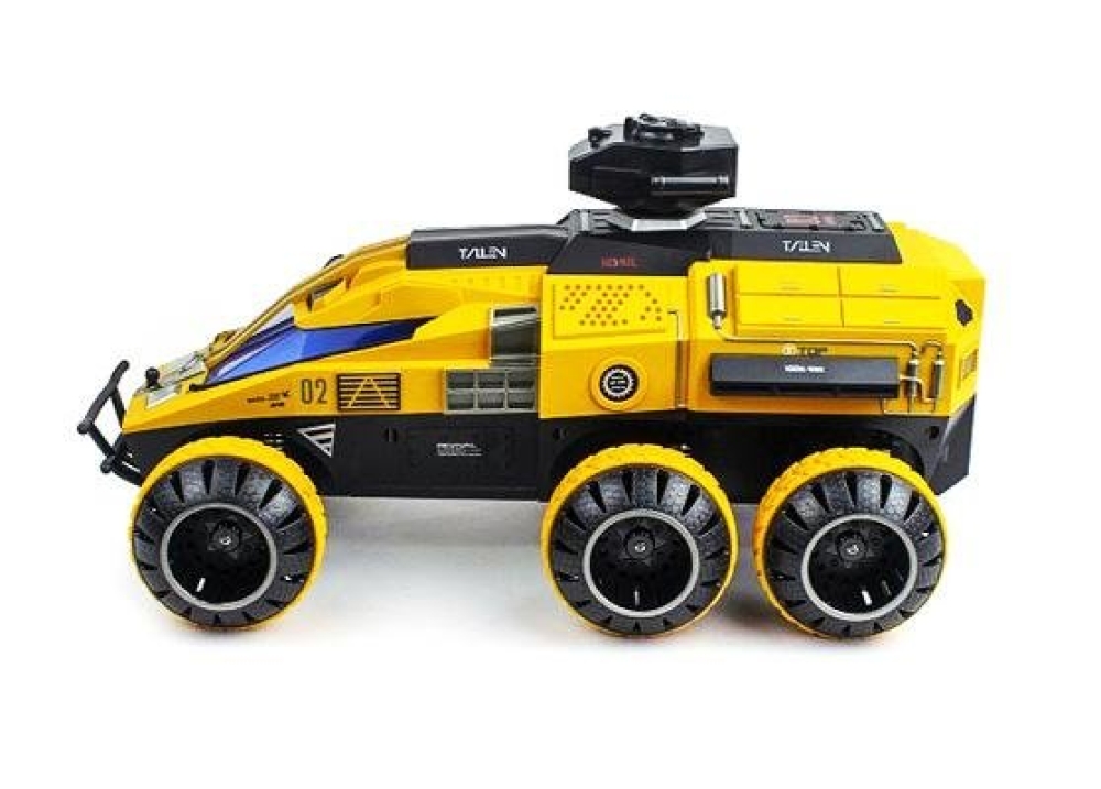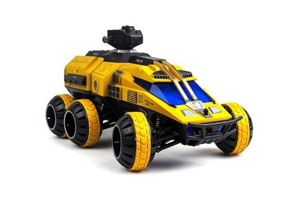 Главная особенность этой модели - это стрельба орбизными пульками. Пушка модели расположена сверху и выдвигается. Орбизы следует предварительно замочить в воде (в присутствии взрослых, см.меры предосторожности). Дизайн вездехода футуристичный, корпус песочного цвета.