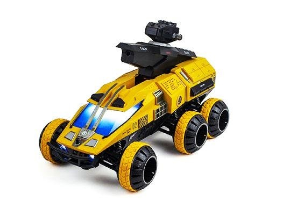 Марсоход Heng Long 6WD RTR 2.4G - это новинка 2023 года, копирующая дизайн реального марсохода NASA. Подходит для уличных прогулок, в том числе вечерних - у краулера ярко светится кабина и фары - и передние, и задние. Для экономии батареи их можно отключить. У вездехода полный привод на все 6 колес, угол подъема - 30°, а максимальная скорость - 15 км/ч.