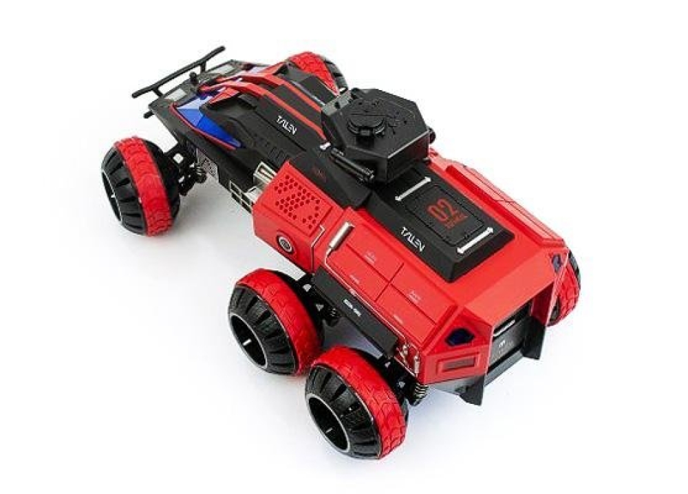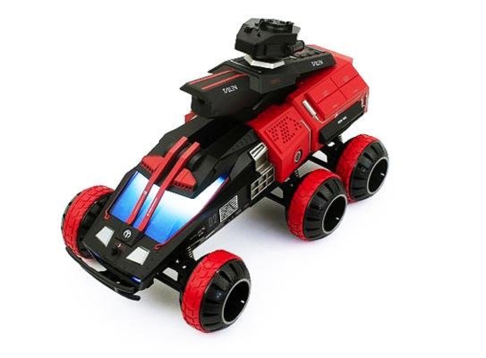 Главная особенность этой модели - это стрельба орбизными пульками. Пушка модели расположена сверху и выдвигается. Орбизы следует предварительно замочить в воде (в присутствии взрослых, см.меры предосторожности). Дизайн вездехода футуристичный, корпус красного цвета.