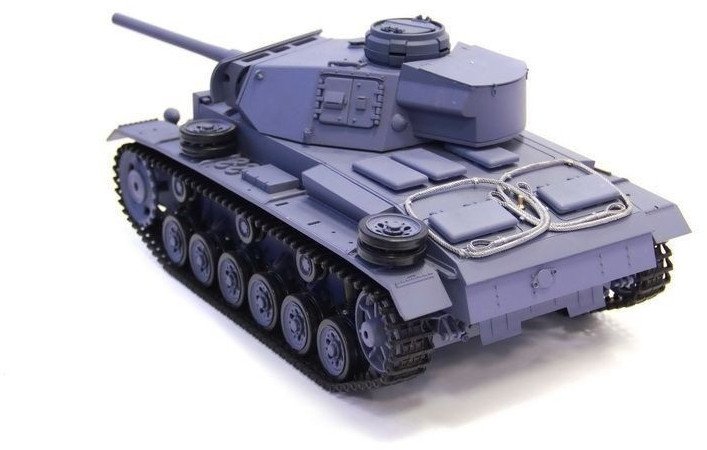 Радиоуправляемая модель танка Heng Long Panzerkampfwagen III с совмещенной пневмо- и ИК-пушкой и аппаратурой управления 2.4GHz версии 7.0. Возможность настроить передатчики на разные частоты позволяет участвовать в сражении до 3-х танков одновременно.
