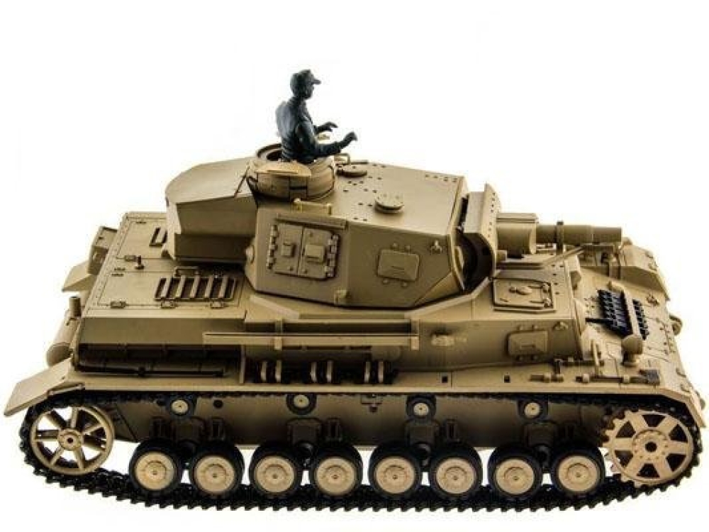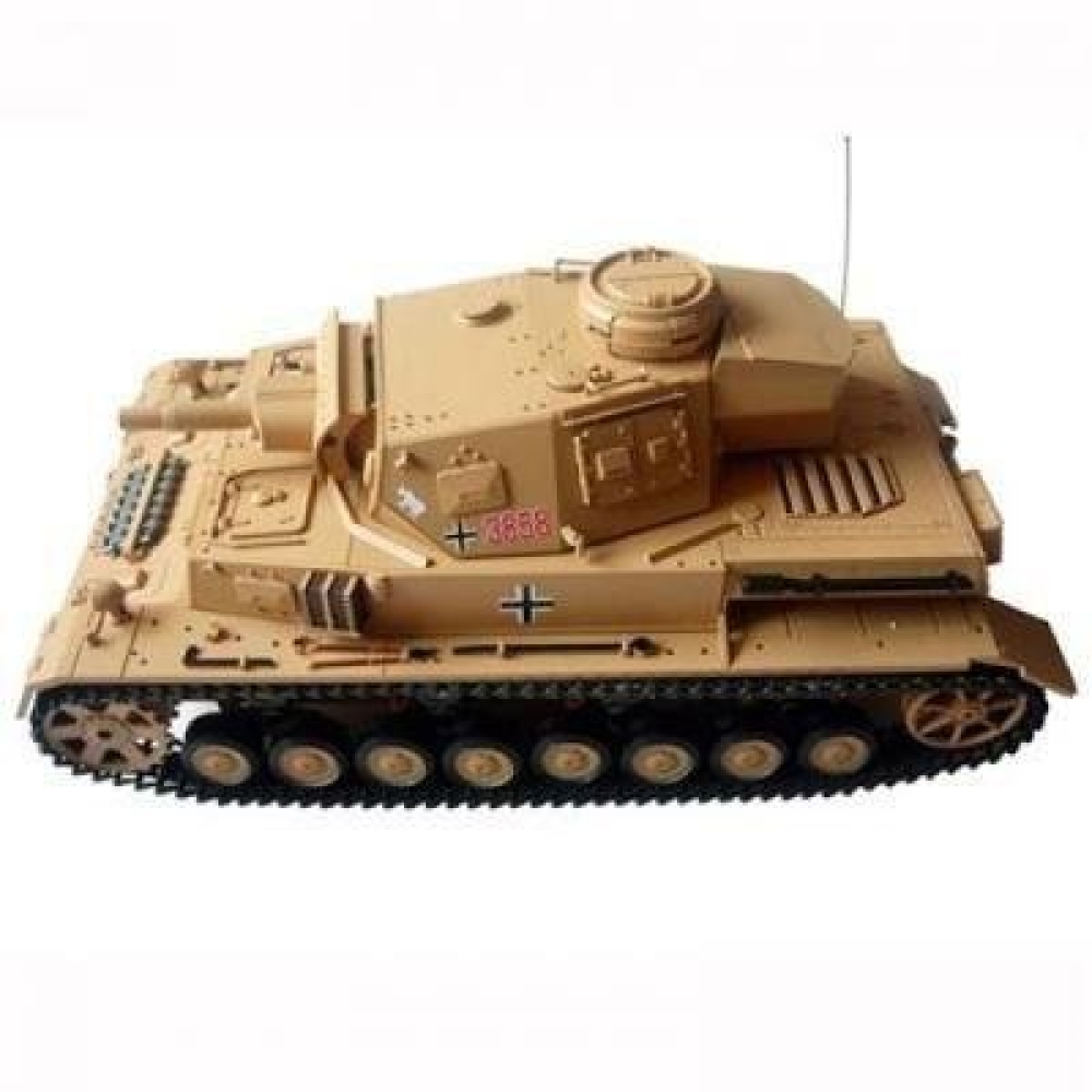 Дополните свою коллекцию танков, немецкий Punzer IV повторяет оригинал с высокой детализацией. На корпусе и башне танка вы найдете дверцы и люки, которые открываются, тросы, запасные траки прикреплены к танку. Модель имеет стреляющую пневмопушку. В магазин помещается до 40 пластиковых 6-мм шариков. При выстреле происходит откат орудия, имитируя отдачу от выстрела, а также раздается характерный звук. Данная модель отличается от стандартной версии наличие цинковой ведущей шестерни вместо пластиковой.