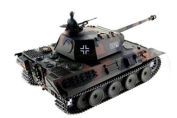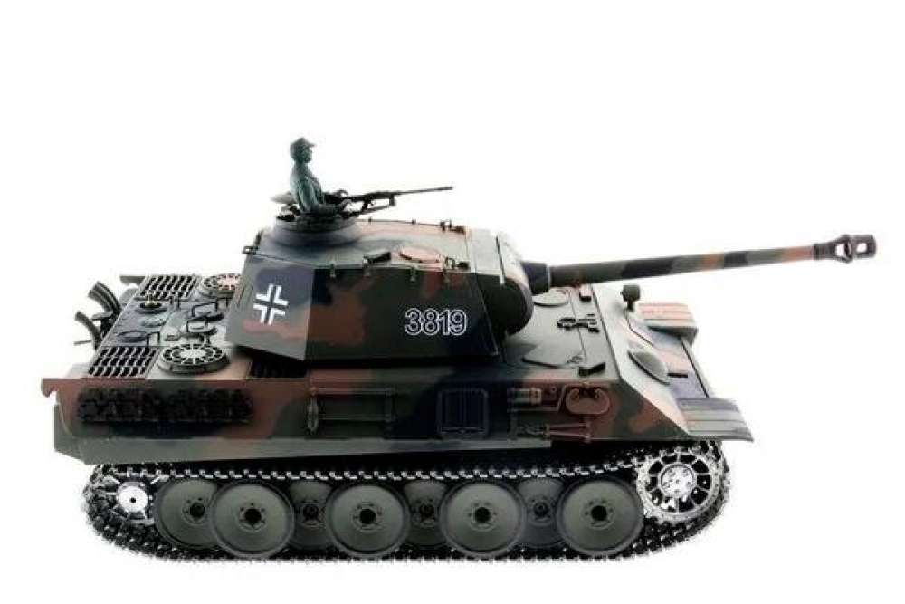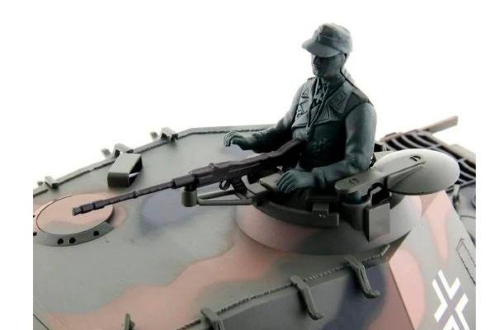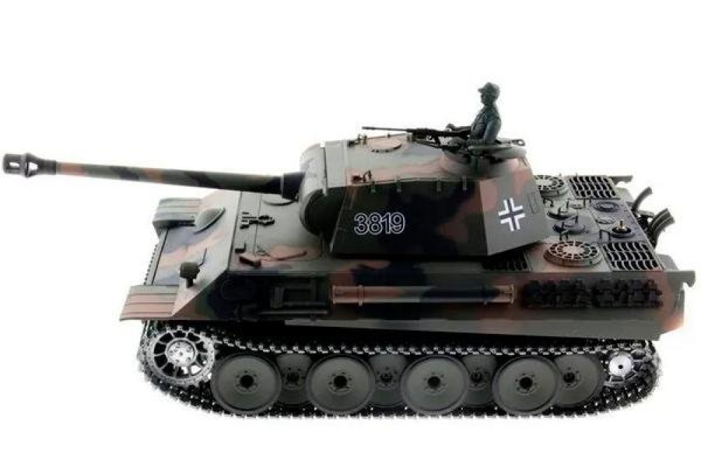 Известный немецкий танк второй мировой войны, который активно участвовал в сражениях. Имеет высокую детализацию и большой размер, модель выполнена в масштабе 1:16. Качественно окрашен и имеет навесное оборудование в комплекте. Башня танка вращается на 360 градусов. В танке установлен дымогенератор, который работает на глицерине (достаточно всего пару капель). Кузов танка выполнен с высокой детализацией, на нем устанавливается навесное оборудование, фигурка командира. Башней и движением танка можно управлять одновременно. В результате производимые действия получаются более реалистичными
