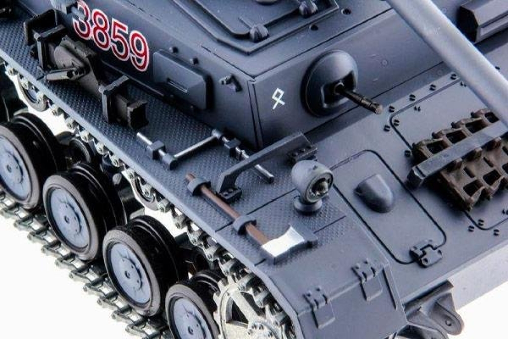 Во времена второй мировой войны в сражениях участвовал легендарный немецкий танк Panzerkampfwagen, который послужил прототипом для создания точнейшей детализированной копией танка 3859-1Pro от компании Heng Long. Металлический сплав гусениц является отличным гарантом того, что не придется постоянно их менять из-за износа от твердых поверхностей. Модель имеет характерные звуки выстрелов и работающего мотора, а так же присутствует симуляция дыма из выхлопной трубы. На башне присутствует пневматическая пушка, которая при залпе откатывается чуть назад. При этом стрельба ведется на расстояние от 10 до 20 метров, что является рекордом для танков такого калибра. Независимая подвеска катков, красные габаритные огни, и передняя фара не дадут вам потерять его из виду даже в темное время суток. А так же крутые звуковые эффекты: пальба из пушки, выстрелы пулемета и гул мотора. В комплектацию входит танк в сборе, аккумулятор, шарики(200шт), масло, пульт управления, зарядное устройство.