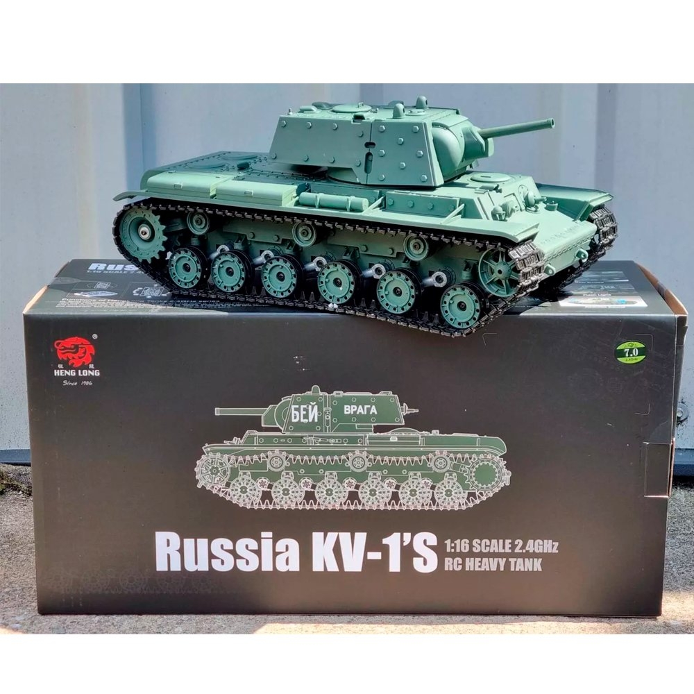 Модель на радиоуправлении Heng Long 3878-1Upgrade V7.0 в масштабе 1:16 в точности повторяет танк КВ-1, стоявший на вооружении в Советском Союзе во времена Великой Отечественной Войны. Имеет собственную пневматическую пушку, оснащенную уникальной технологией Hop-up с прицельной дальностью стрельбы в 20-30 метров. Пушка вращается на 320° и поднимается на разную высоту. В автоматический магазин может одновременно поместиться 100 снарядов в виде шариков диаметром 6 мм. Модель также имеет функцию программирования и может участвовать в сражениях с общим количеством техники до трех единиц. При разрядке аккумулятора подается специальный сигнал. Модель танка оснащена высоко детализированным кузовом, на котором расположено навесное оборудование. Отличие V7.0 от V5.3 являются возможность участия в инфракрасных танковых сражениях с другими моделями и регулируемое натяжение гусениц. В комплектацию входит: танк в сборе, аккумулятор, пульт управления, зарядное устройство, шарики 6мм(200 шт), масло, инструкция, мишень.