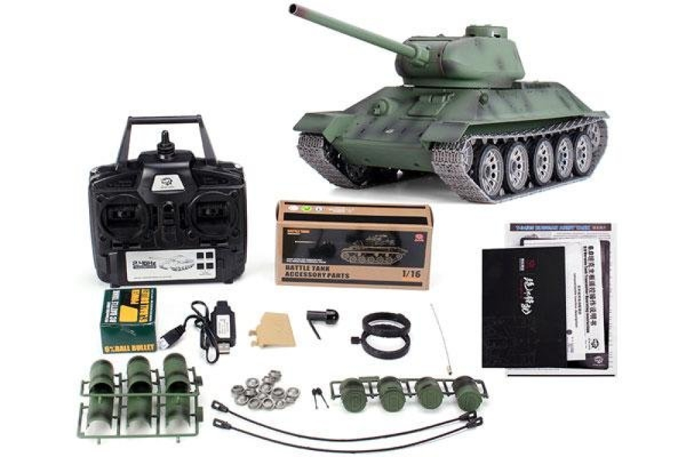 Радиоуправляемый танк Heng Long Танк Т34/85 3901-1 PRO в масштабе 1:16 - это обновленная версия знаменитого советского танка на пульте управления. Имеет мощные коллекторные электромоторы и усиленную ходовую для прохождения бездорожья. За счет большого количества металлических деталей имеет низкий центр тяжести и вес 4кг делает его невероятно реалистичным во время движения. Поставляется в RTG комплекте, т.е. все необходимое для заездов сразу в коробке. Модель танка имеет высокую детализацию и порадует как коллекционеров военной техники, так и детей. Отличия от стандартной версии: