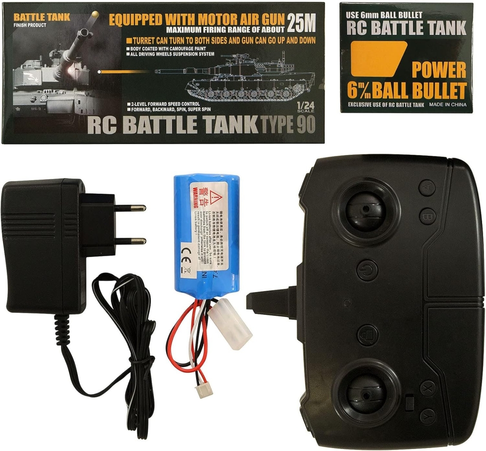 В комплекте: танк Type 90, аккумулятор, зарядное устройство, пульт, инструкция, пульки.