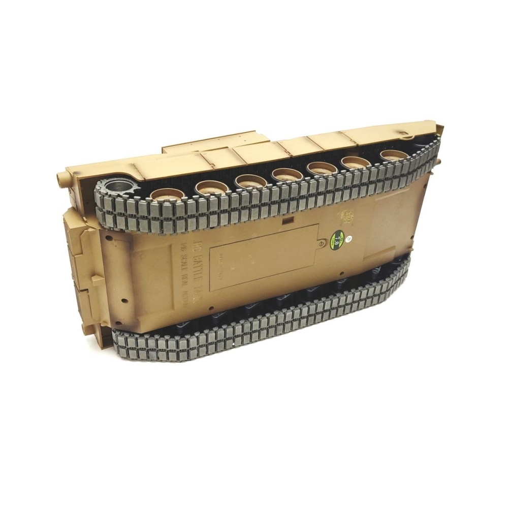 - Скорость 12-15 км/ч, возможна замена шестеренки, что уменьшает его скорость, но увеличивает мощность и делает поведение танка более реалистичным (шестеренка с валом в комплект не входят!).