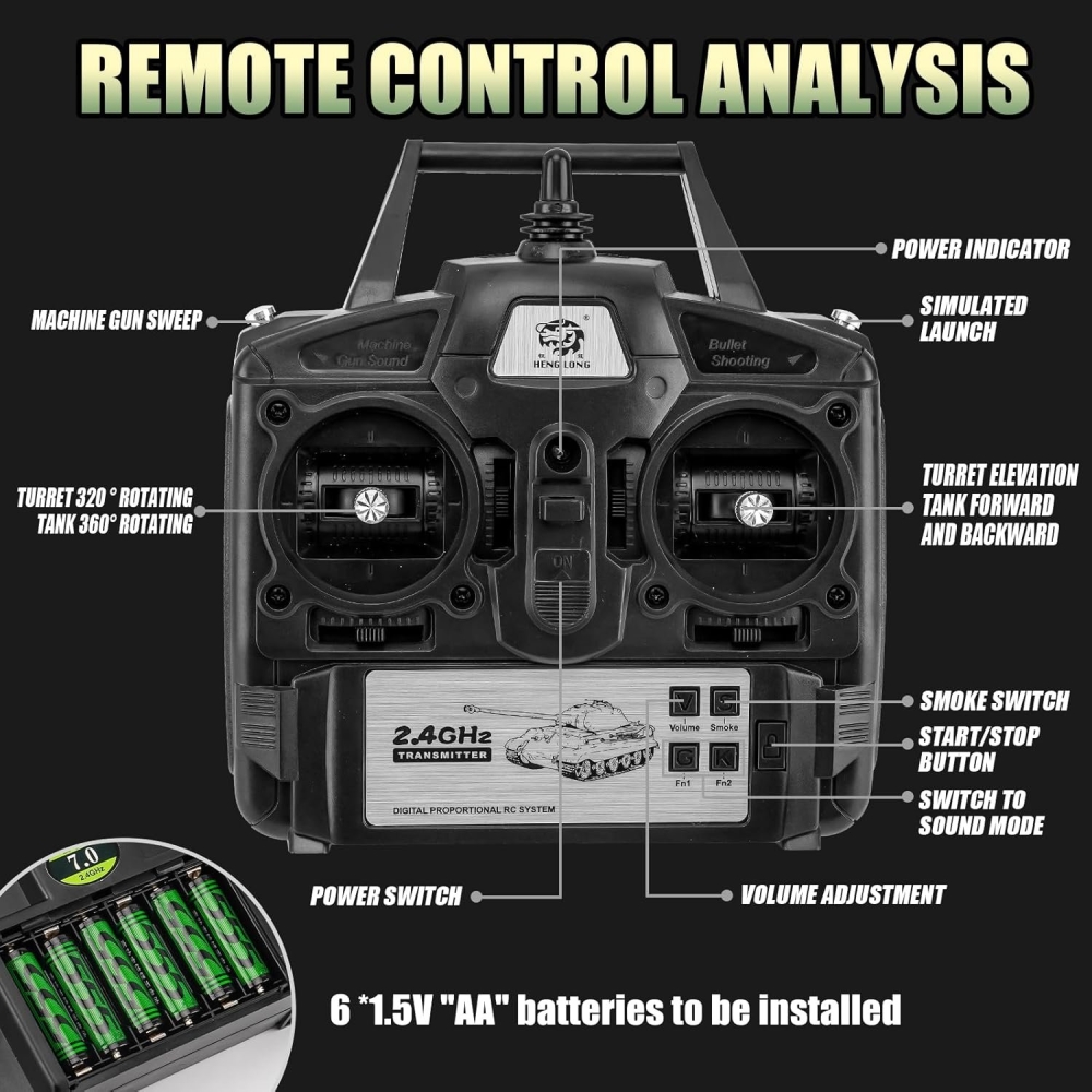 Модель комплектуется: танк, аккумулятор, упаковка 6-миллиметровых шариков ВВ (200 штук), мишень, масло для дымовых эффектов, фигурка танкиста и различные пластиковые навесные аксессуары