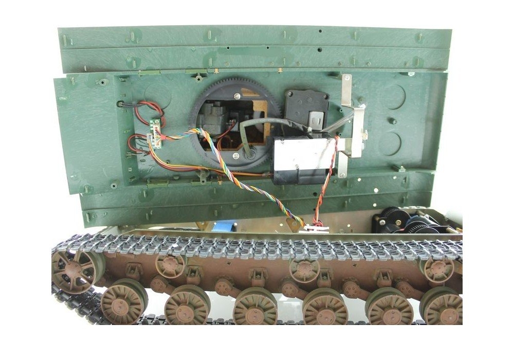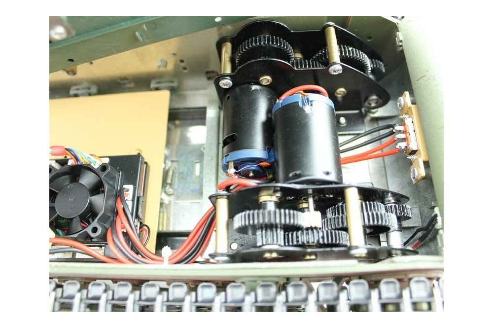 Модель полностью готова к работе, филигранно раскрашена и имеет все необходимые аксессуары для эксплуатации. Инфракрасная пушка, выхлопные трубы оборудованы дым - системой, движение модели сопровождается звуковой имитацией работы двигателя! На модели светятся фары, и вращается башня влево/вправо в секторе 360°, ствол откланяется вверх/вниз. При выстреле имитируется «отдача» и звук орудия, а работающая подвеска катков, лязг гусениц заставляют поверить в реальность происходящего!