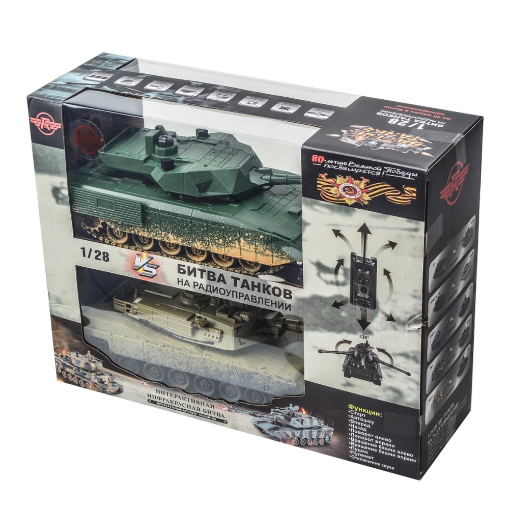 - Управление на помехозащищенной частоте 2.4 Гц, что дает возможность купить несколько разных наборов танкового боя и играть одновременно.