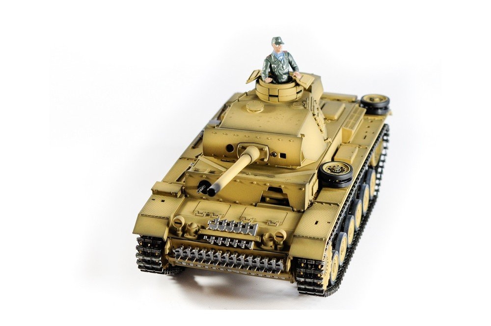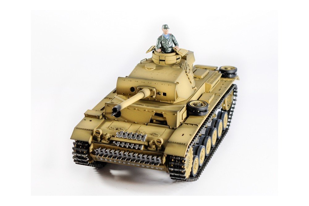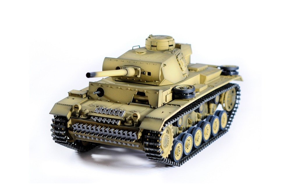 Радиоуправляемый танк Taigen 1/16 Panzerkampfwagen III (Германия) дым, свет (для ИК боя) V3 2.4G RTR пустыня - TG3848-BD-IR3.0