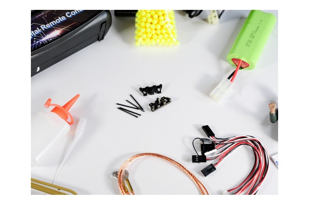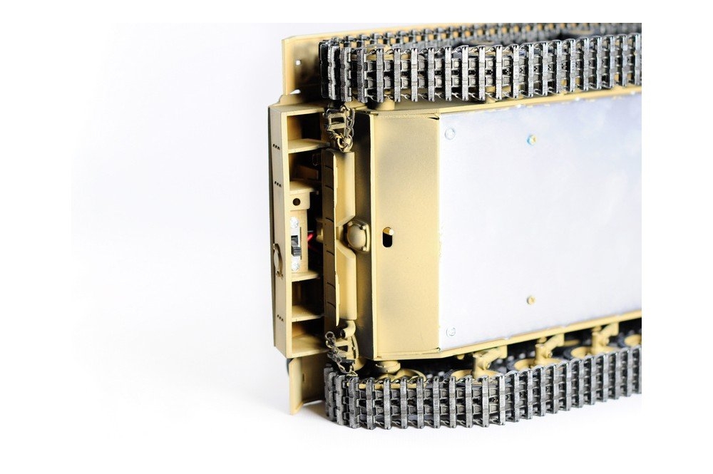 Включает металлические гусеницы, металлические редукторы, металлические звёздочка и ленивец, металлические опорные и поддерживающие катки, металлические шасси и амортизаторы, металлическое навесное оборудование. Это делает танк не только более надежным и долговечным, но и придает ему неповторимый внешний вид, а также открывает простор для дальнейшей модернизации.