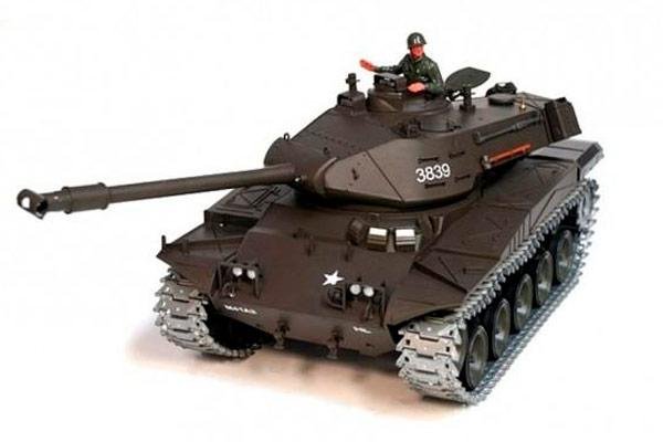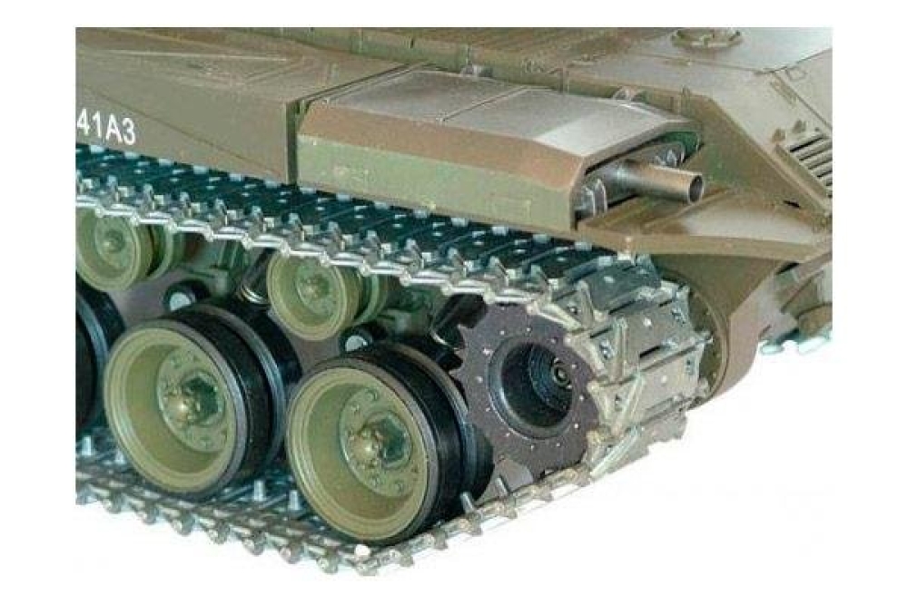 Высоко детализированный Bulldog от компании Taigen с ручной росписью кузова – это точная копия танка, который производился в Соединенных Штатах в 1958 году. Окончательная версия модификаций линейки M41, которая является самой удачной и поставлялась в ряд стран для вооружения, главной ее особенностью является его легкость. Эта модель масштаба 1/16 является PRO версией танка, отличительной чертой которого является наличие металлических частей, а именно металлические гусеницы и редукторы. На башню установлена моделька танкиста, сама же пушка имеет подъемную и опускающуюся функцию в 30 градусов, а также башня вращается на 340 градусов и стреляет пулькам 6 мм на расстояние 20-30 метров. Танк может ездить в любую сторону и крутиться вокруг своей оси на 360 градусов. В аппарат установлена батарея NI-MH емкостью 2000 mAh, что позволяет модели работать беспрерывно 20 минут. В комплектацию входит: танк, аккумулятор, зарядное устройство, пульт управления, инструкция.