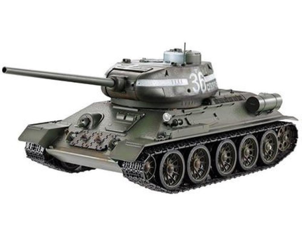 Радиоуправляемый танк Taigen T34-85 в масштабе 1:16 - это полностью функциональная модель, имеющая высокий уровень детализации и металлические компоненты. Танк Т34-85 - средняя машина, поступивший на вооружение в 1940 году и бывший одной из сильных сторон Советского Союза против вторжения вермахта. Taigen T34-85 является полностью функциональной машиной с разнонаправленностью движения. Башня полностью металлическая, установлена на трех подшипниках. Башня вращается на 360°, поднимается и опускается. Для полного реализма есть возможность отката орудия во внутрь башни при выстреле вместо механизма выстрела шарика. При этом внутри дула мигает красный светодиод. Для большего реализма решетка забора воздуха для двигателя реализована способом фототравления и подкрашена в цвет танка. Особенности: