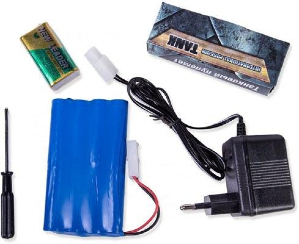 В комплекте вы найдете: аккумулятор, зарядное устройство, батарейка для пульта, комплект пулек, мишень для стрельбы, отвертка, инструкция