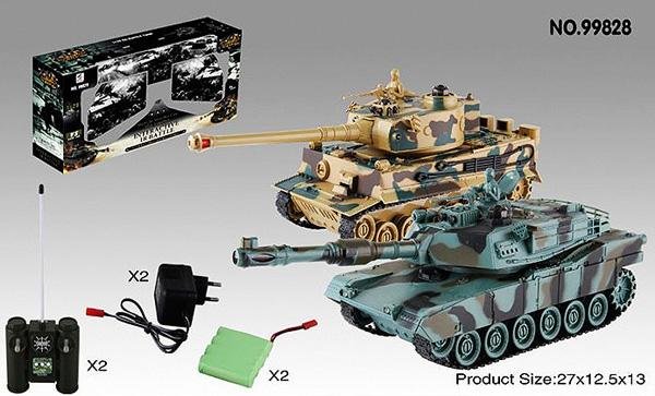 Танковый бой масштаба 1:28 в форме противостояния американского Абрамса М1А2 и немецкого Тигра. Оба танка стреляют инфракрасными лучами на расстоянии до 3-х метров в секторе до 10°, ходят на гусеницах во всех направлениях, каждая гусеница управляется отдельно. За счет этого модели могут разворачиваться на 360°. Они также могут преодолевать небольшие препятствия с уклоном до 30°. Башни вращаются на 320°, пушки можно поднять или опустить прямо на ходу.