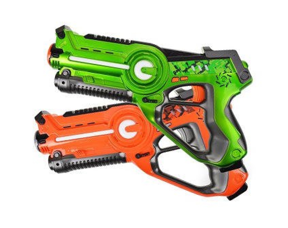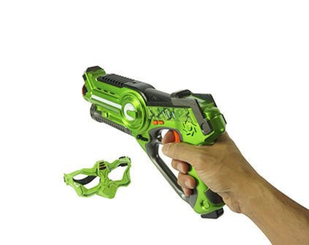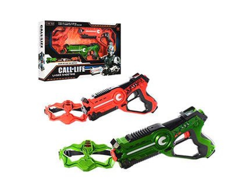 Набор Winyea Call of Life W7001D позволит каждому юному спецагенту или космодесантнику показать себя в деле. В набор входят 2 пистолета для лазерного боя (зеленый, красный) и 2 защитные маски. Пистолеты стреляют ИК-лучом – при попадании в маску противника подается сигнал о точном выстреле и снятии одной жизни (в одном бою предусмотрено 5 жизней). Маска и пистолет работают от батареек, которых хватает на 10-15 минут активного сражения. Набор оружия с звуковыми и световыми эффектами для увлекательного лазерного боя станет лучшим подарком для любого мальчугана.