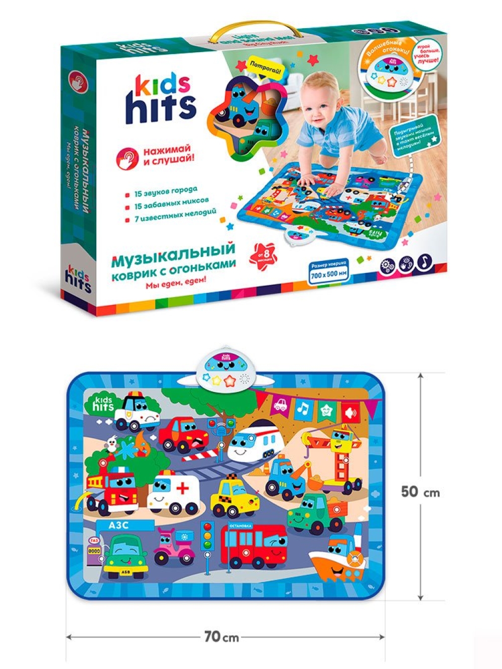 Интерактивная игрушка Kids Hits – удивительный музыкальный коврик с огоньками "Мы едем-едем", разработанный специально для детей от 8 месяцев. Этот коврик способствует многогранному развитию малыша, открывая двери в мир музыки и ярких эмоций. Уникальные сочетания забавных звуков и приятная на ощупь ткань позволяют ребенку исследовать окружающий мир через все органы чувств.