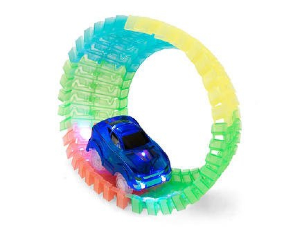Гоночную трассу Magick Tracks легко собрать — но от нее крайне сложно оторваться. Эта по-настоящему магическая трасса способна менять свое направление в любую сторону, на все 360 градусов — а это значит, что можно сделать даже мертвую петлю! Дорога делится на 220 деталей, которые с легкостью сможет собрать и разъединить ваш ребенок. Они разноцветные, сделаны из безопасного пластика и светятся в темноте! Удобно брать с собой и хранить. Машинка, идущая в комплекте, оснащена светодиодами и может ездить не только по трассе, но и по любой другой поверхности