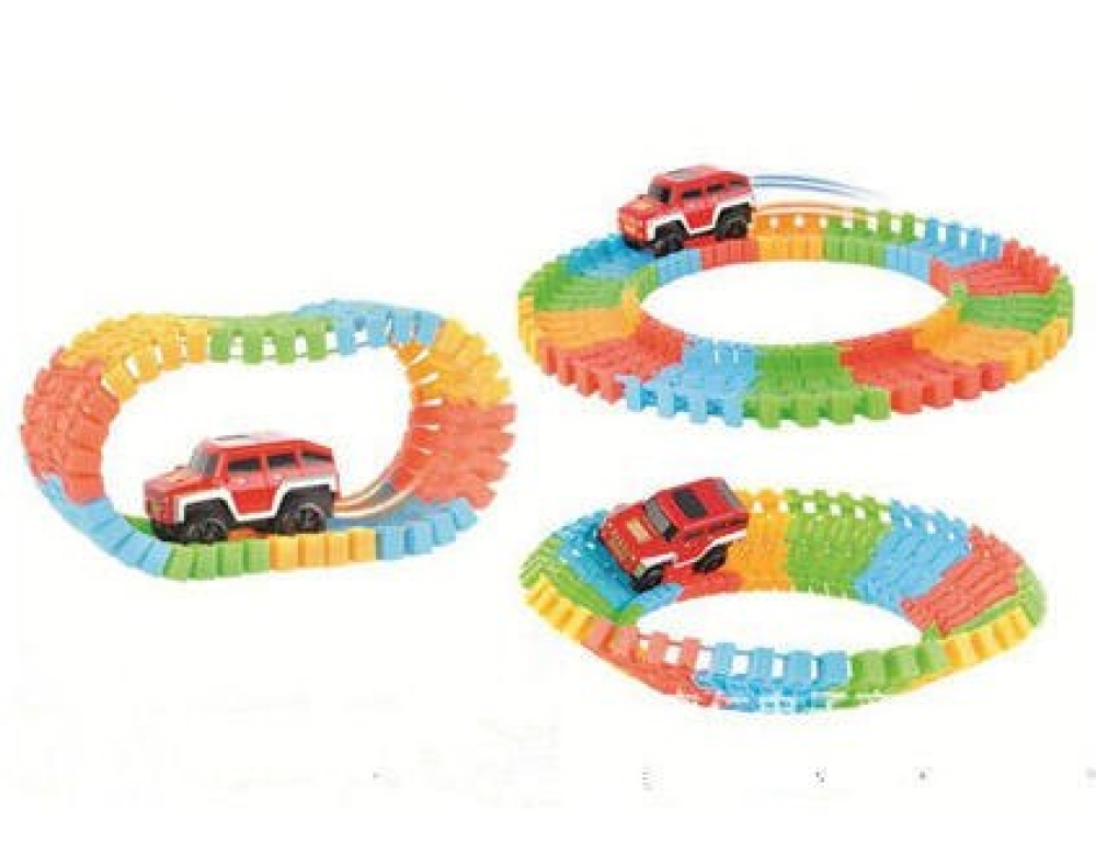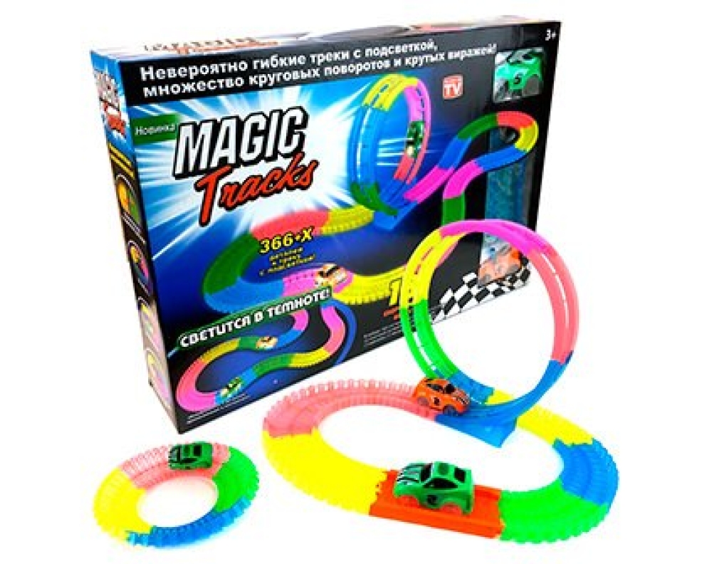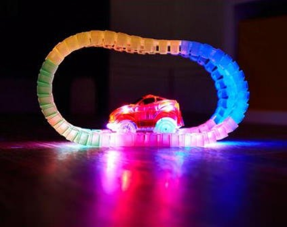 Самая большая гоночная трасса. Деталей хватит что бы построить 2 трассы и устроить соревнование! Трасса светится в темноте и изгибается во все стороны - настоящая магия для вашего ребенка. Дорога делится на 366 деталей. Детали приятные на ощупь и доставляют удовольствие играть с ними. Набор сделан из высококачественных материалов. В коробку без проблем помещается весь набор, возьмите его с собой в поездку.