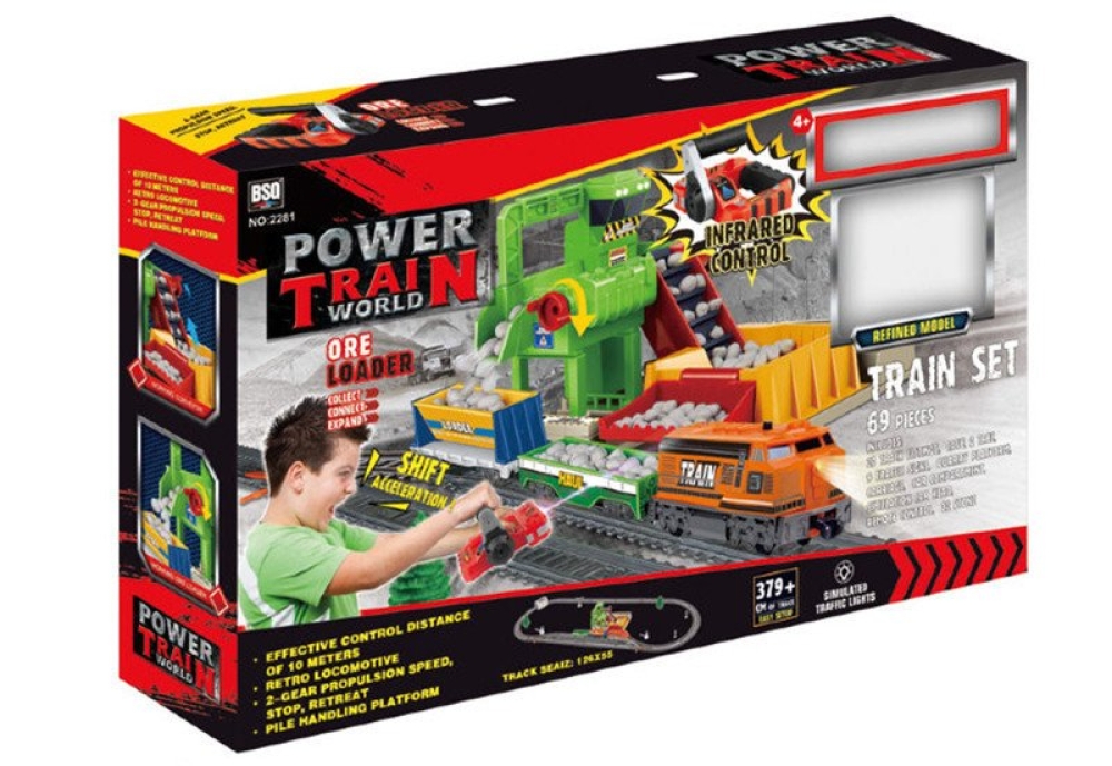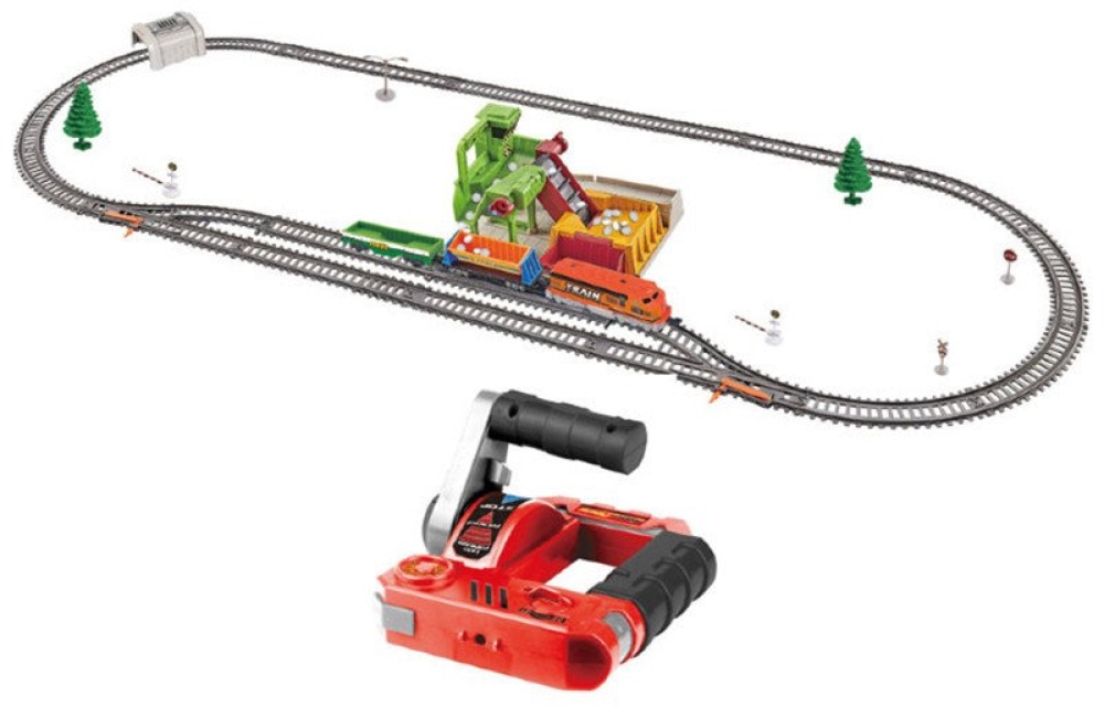 Во время путешествия локомотив пройдёт несколько развилок и может сделать остановку на станции, примите груз и отправьтесь в очередной рейс! Камни загружаются в вагон с помощью специального подъемного механизма. Игровой функционал позволяет, переводить поезд на другую ветку. В комплекте пульт ДУ, для управления поездом на расстоянии.