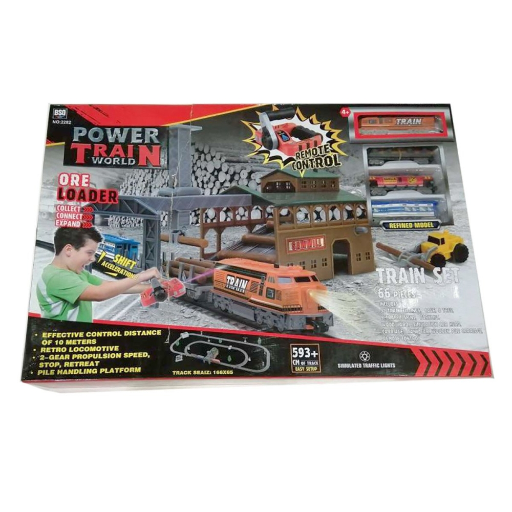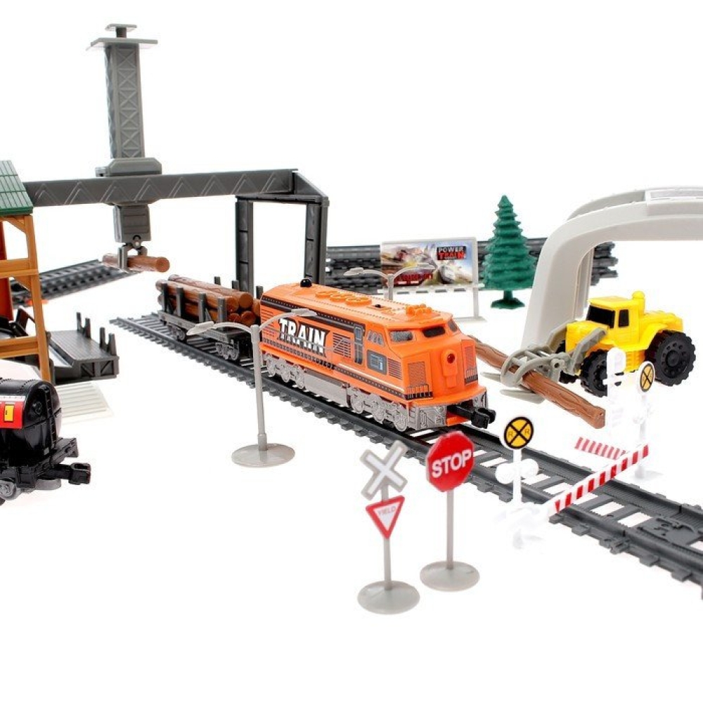 Бревна загружаются в вагон с помощью специального подъемного механизма. Игровой функционал позволяет, переводить поезд на другую ветку. В комплекте пульт ДУ, для управления поездом на расстоянии.