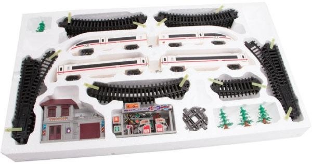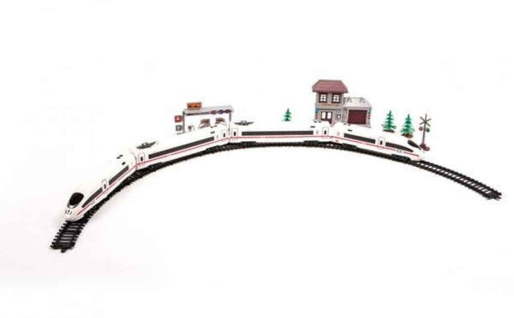 Высокоскоростной экспресс состоит из 2-х локомотивов и 2-х вагонов крупного размера. Собрав дорога вы сможете проехать по нескольким крутым поворотам, проезжая через городские домики, елки, дорожные знаки, светофоры и другие объекты.