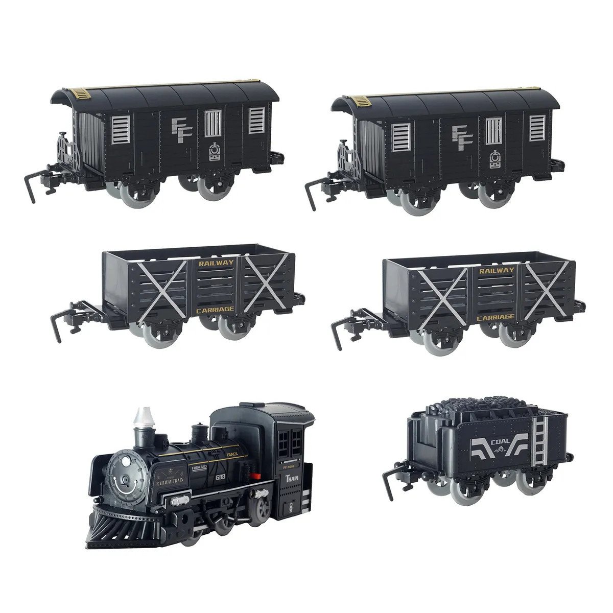Железная дорога Fenfa (5 вагонов, звук, пускает пар) - 1603C - это качественная железная дорога, которая состоит из 40 деталей. Дорога станет прекрасным подарком ребёнку. Бурю неподдельного восторга вызовет локомотив, который настолько реалистично светится и гудит, словно это настоящий поезд.