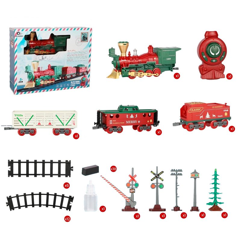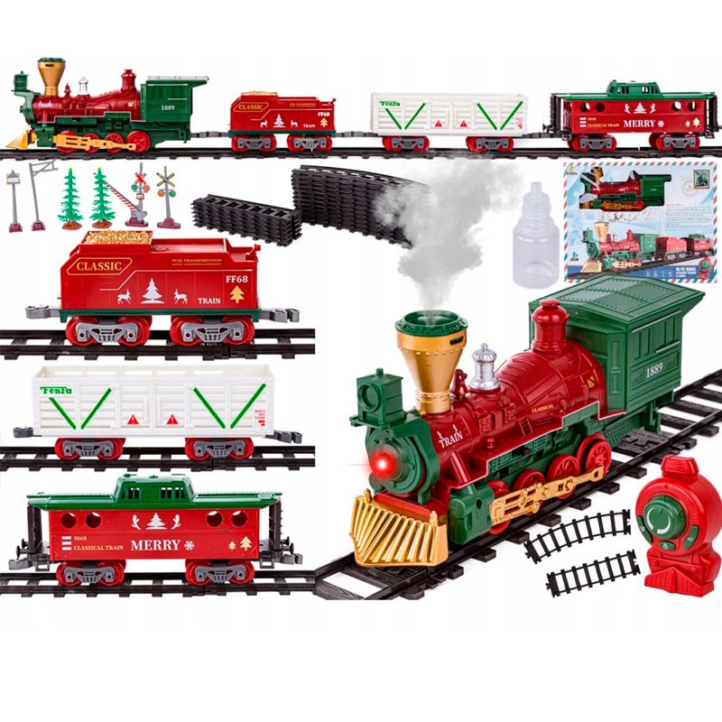 Железная дорога Новогодний поезд Fenfa (3 вагона, пар, пульт, свет, звук) - 1613F – это увлекательная игра, которая не только займет вашего малыша на долгое время, но и принесет много пользы.