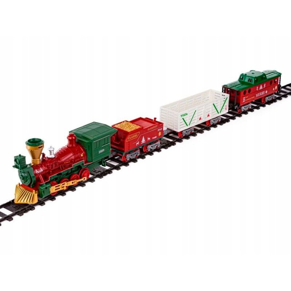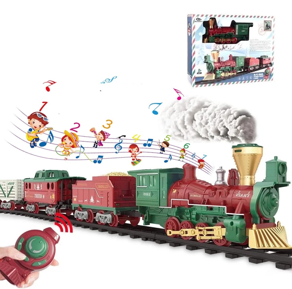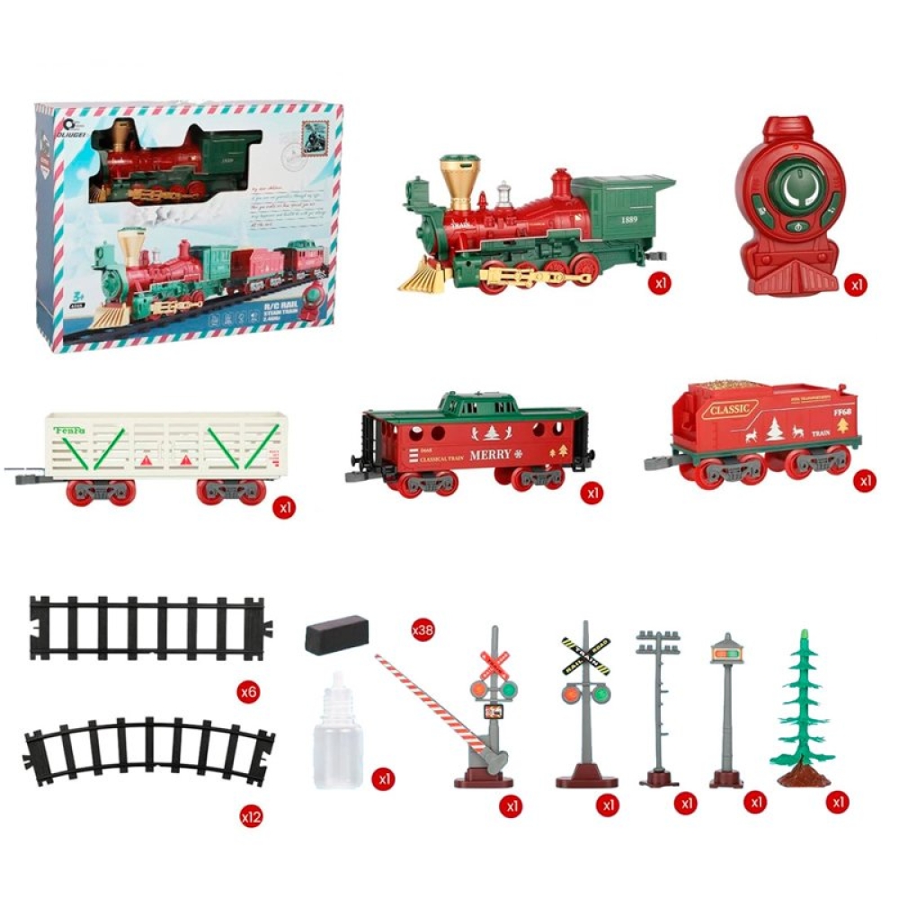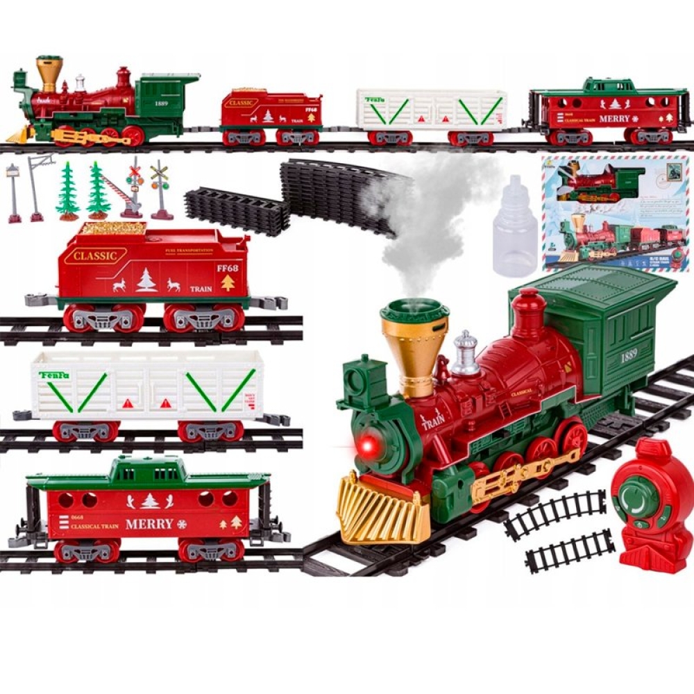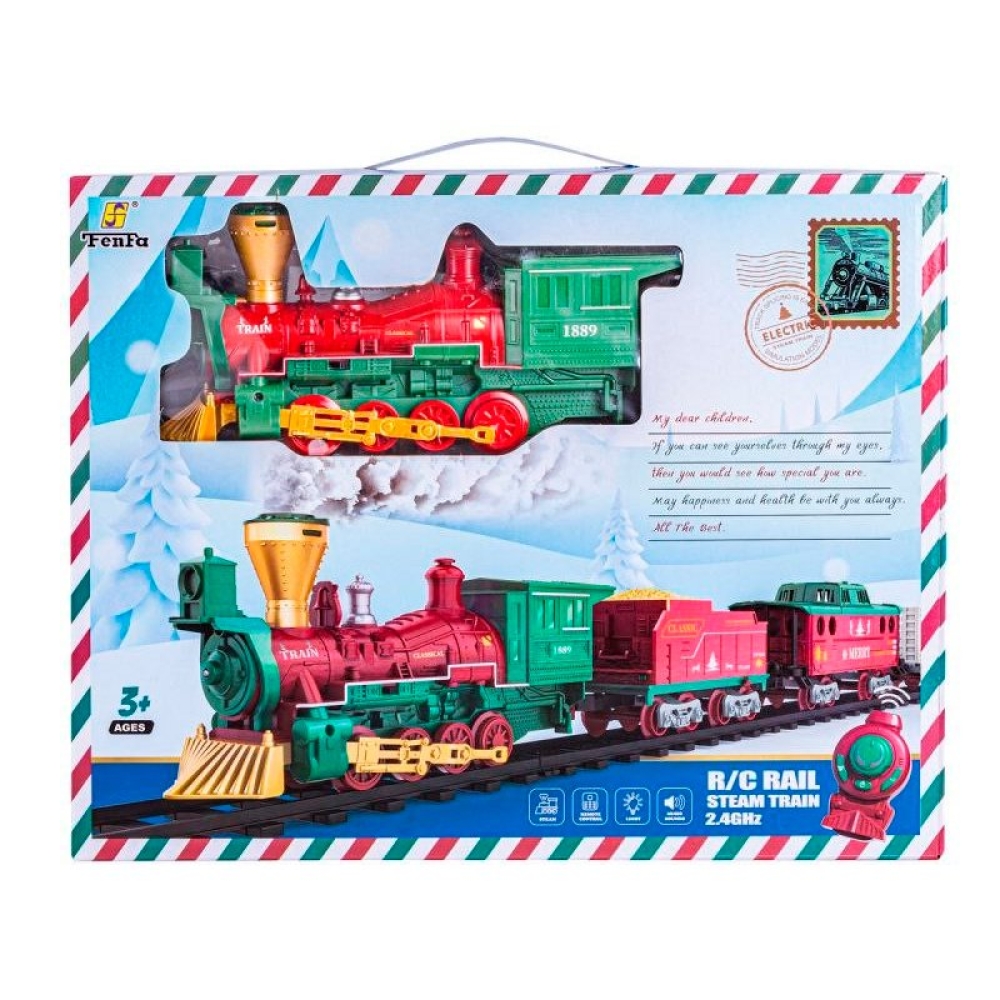 Железная дорога Новогодний поезд Fenfa (3 вагона, пар, пульт, свет, звук) - 1613F