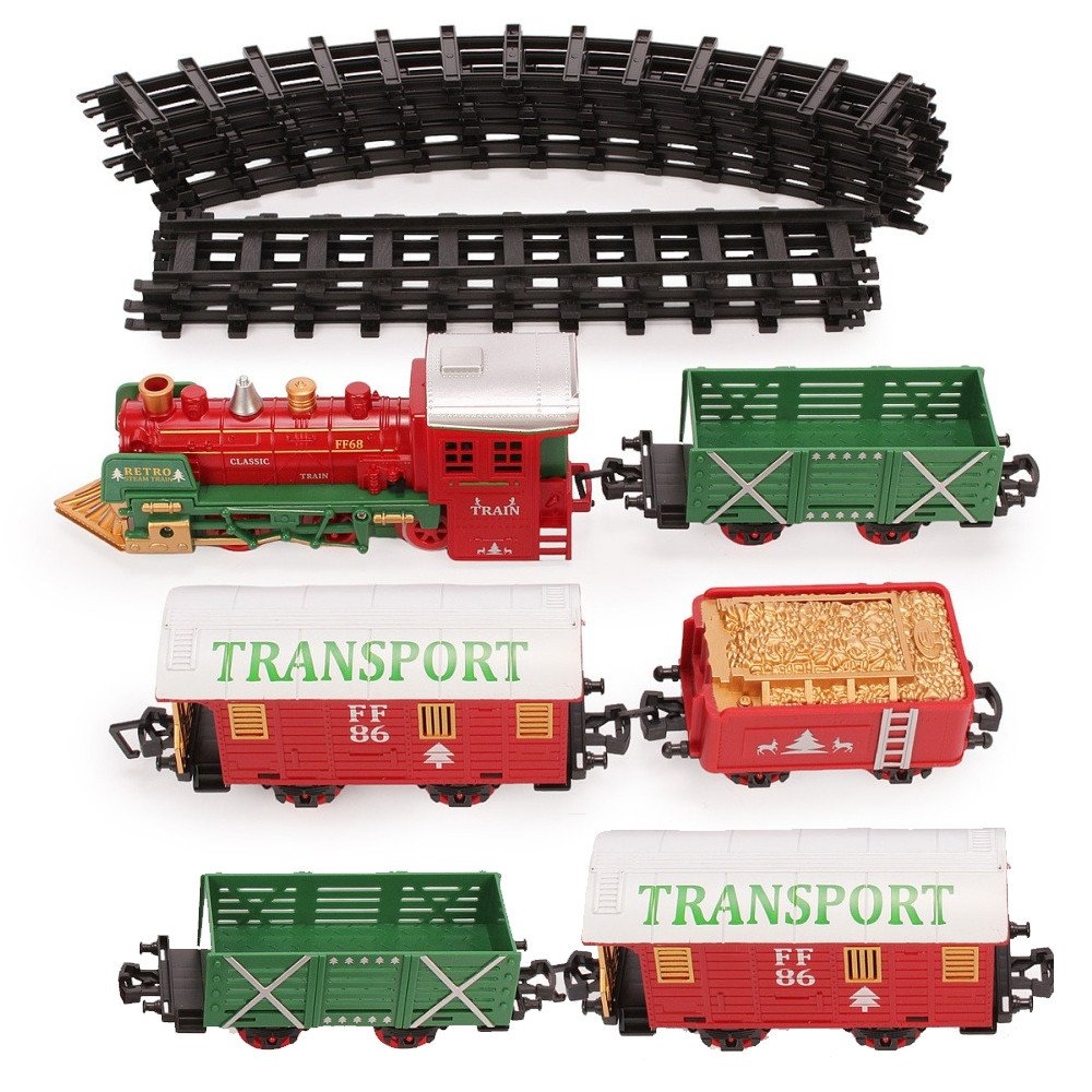 Железная дорога Новогодний поезд Fenfa (5 вагонов, звук, пускает пар) - 1603D