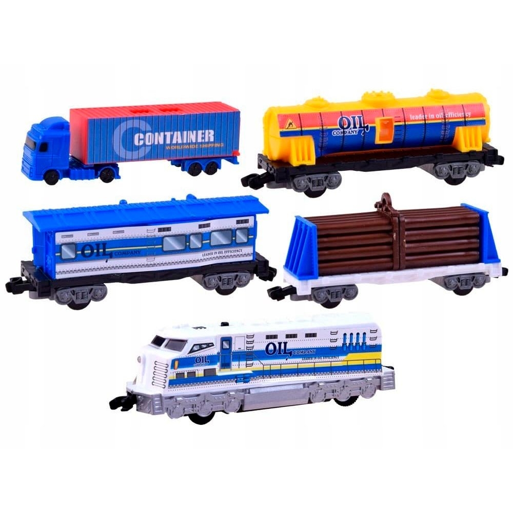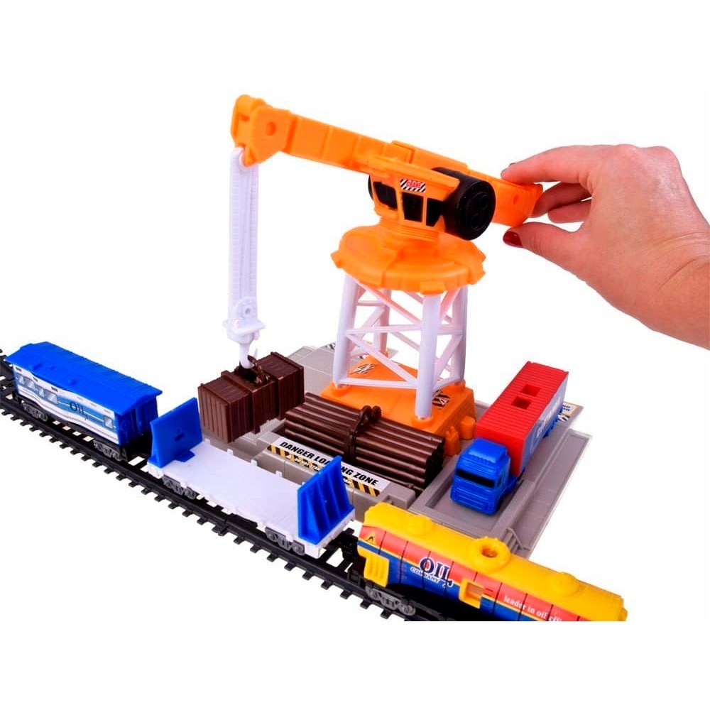 Детская железная дорога со взрослыми возможностями - имеет длинный маршрут 640 см, несколько направлений движения с 4-мя развилками, шлагбаумами и светофорами. По пути вы проедете через еловую рощу, а в разгрузочной зоне вас будет ждать высокий грузовой башенный кран для погрузки бревен в специализированный вагон. Кстати, в наборе также идет грузовик контейнеровоз для обеспечения станции. Из остальных вагонов также цистерна, вагон для перевозки сыпучих материалов и классический контейнер.