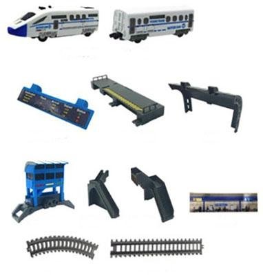 Комплектация | 1 локомотив, 1 вагон, рельсы, аксессуары,станция |