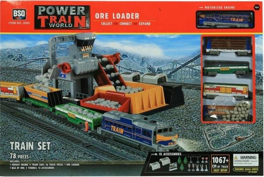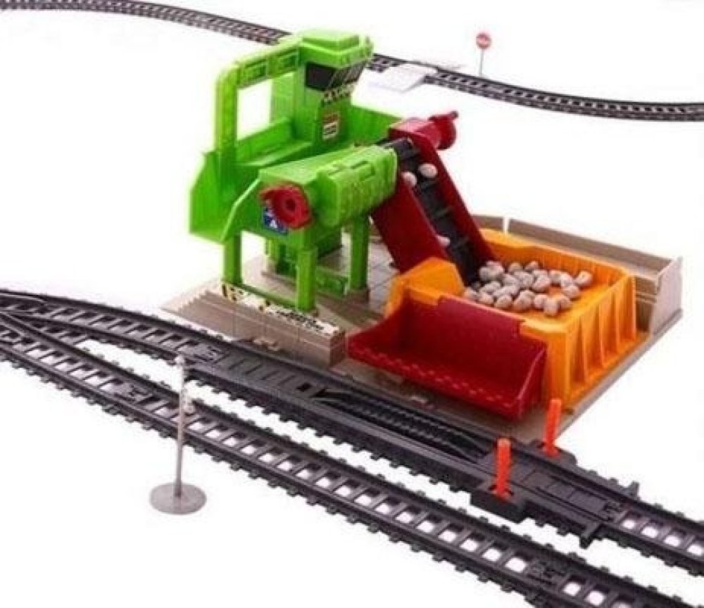 Большая железная дорога с с грузовым составом, который имеет несколько стандартных вагонов контейнеров, а также 2 специализированных для загрузки руды. Это можно сделать на заводе - специализированной платформе, где вы сможете с помощью нескольких механических конвейеров загрузить куски каменной руды в подвижной состав, высыпав ее с 2-х разных уровней. На маршруте вы пересечете несколько туннелей, еловую рощу. По пути есть 6 развилок, поэтому вы можете выбрать наиболее интересный маршрут следования.