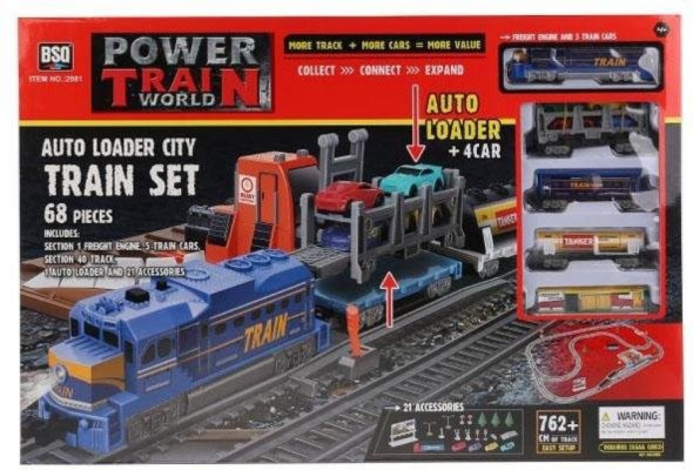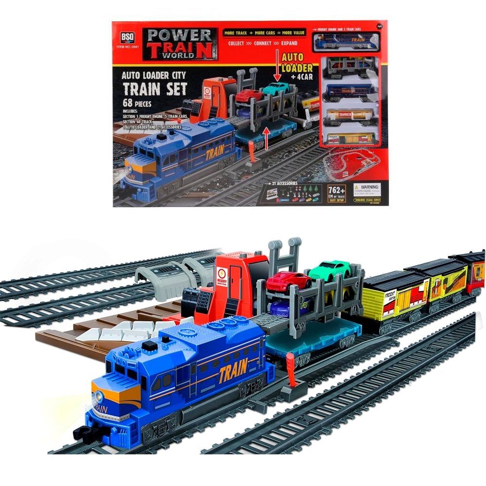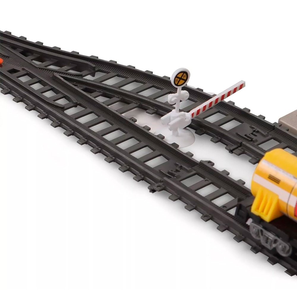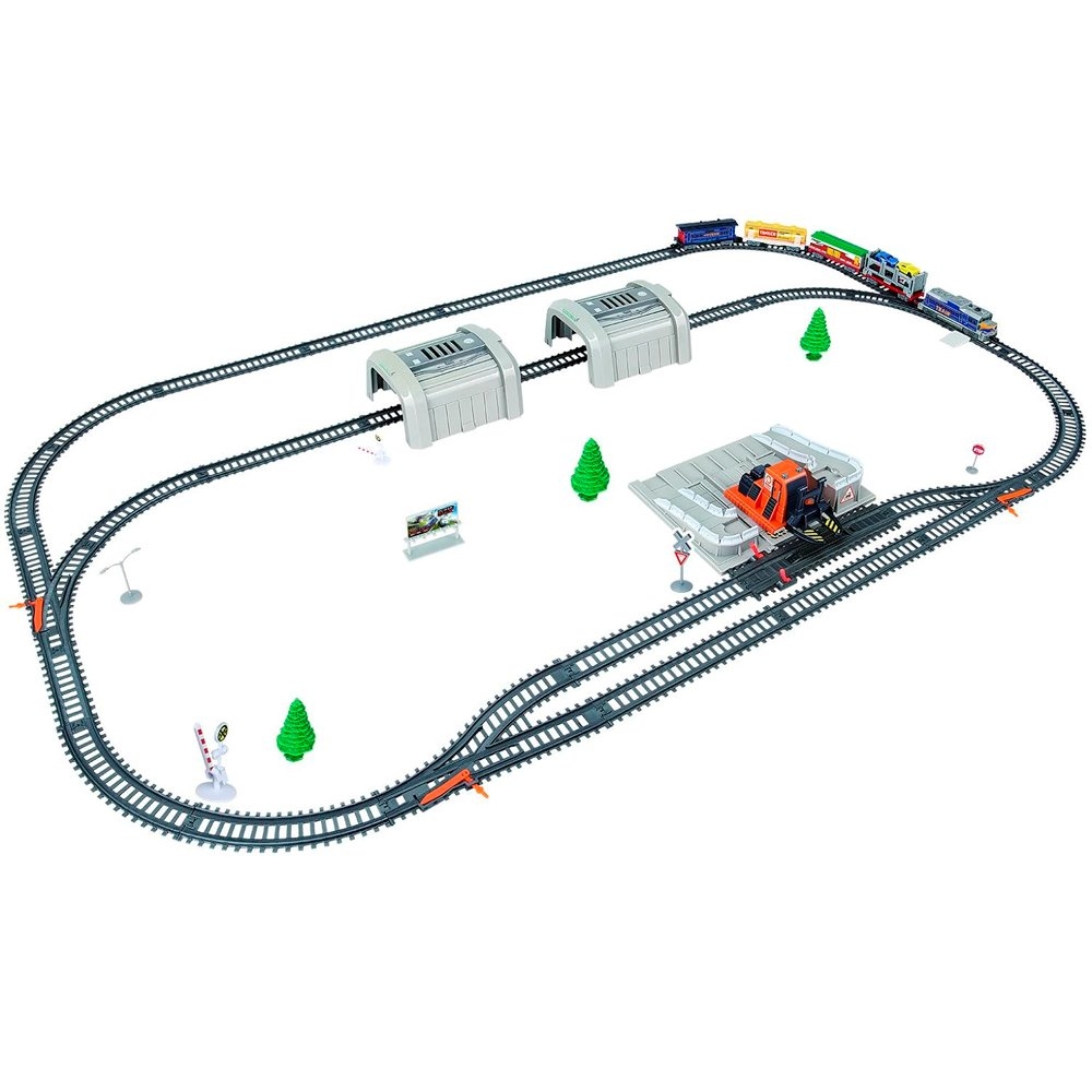 Грузовой локомотив позволит вам устроить интересную игру, т.к. в комплекте идут несколько типов вагонов, например, цистерна, контейнер, а также вагон для автомобилей. Вы сможете погрузить их в вагон с помощью специального станционного погрузчика. На пути следования состава вы сможете увидеть также различные дорожные знаки. Дорога имеет несколько развилок с возможностью регулировки, поэтому маршрут можно изменять.