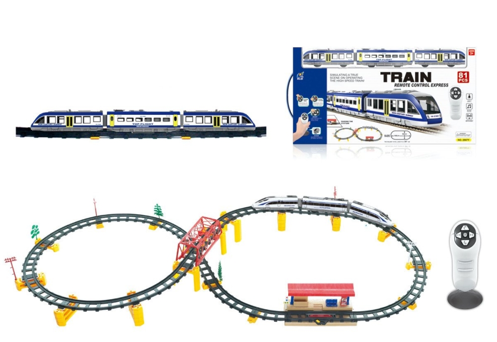Железная дорога с пультом управления (поезд Синий Экспресс, длина 397 см, свет, звук) -LQ-2807Y-1