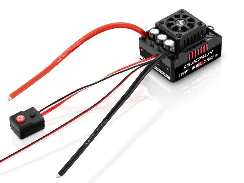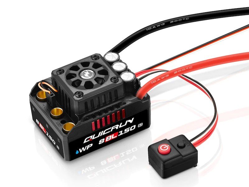 Влагозащищённый бессенсорный регулятор оборотов Hobbywing QuicRun WP-8BL150-G2 (QuicRun-WP-8BL150-G2) 150А с вентилятором системы охлаждения для бесколлекторных моторов на автомоделях 1/8.