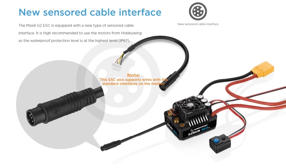 Бесколлекторный регулятор Hobbywing EZRUN MAX8-G2 (160A-1050A, 1/8) влагозащищённый - HW-30103203