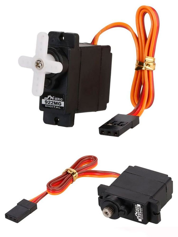 Цифровая сервомашинка JX PDI-922MG с металлическим редуктором. Вес: 12 г, усилие на валу: 1.8 кг/см (4.8V), 2.0 кг/см (6.0V), скорость: 0.1 с/60° (4.8V), скорость: 0.08 с/60° (6.0V).