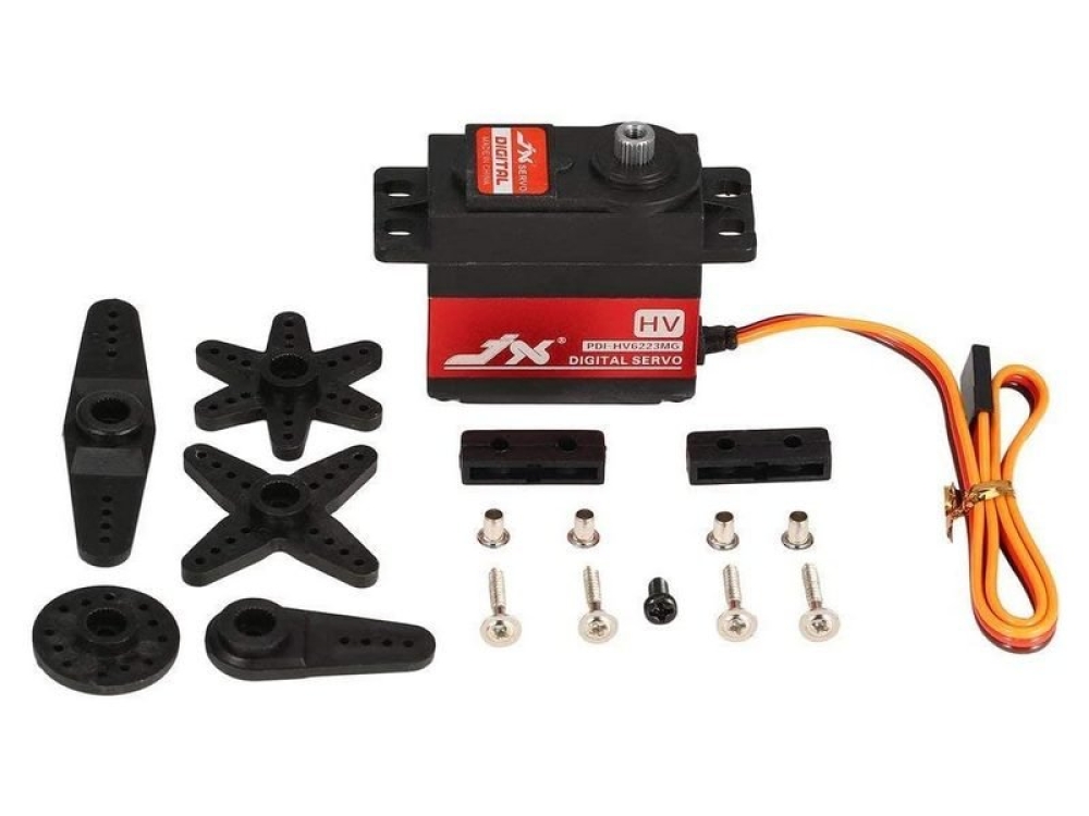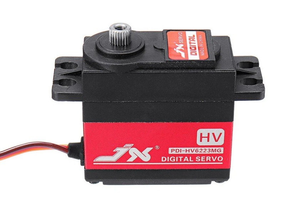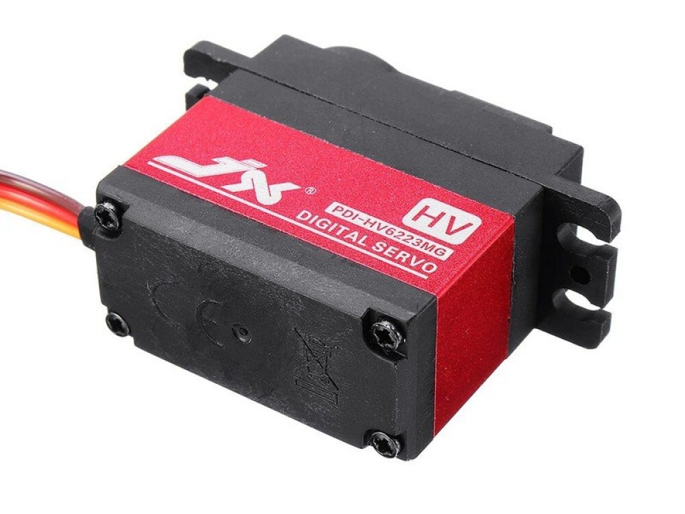 Цифровая сервомашинка стандартного размера PDI-HV6223MG с металлическим редуктором и алюминиевой центральной частью корпуса для лучшего охлаждения. High Voltage. Вес: 62 г, усилие на валу: 19.2 кг/см (6.0V), 23.0 кг/см (8.4V), скорость: 0.18 с/60° (6.0V), скорость: 0.16 с/60° (8.4V).