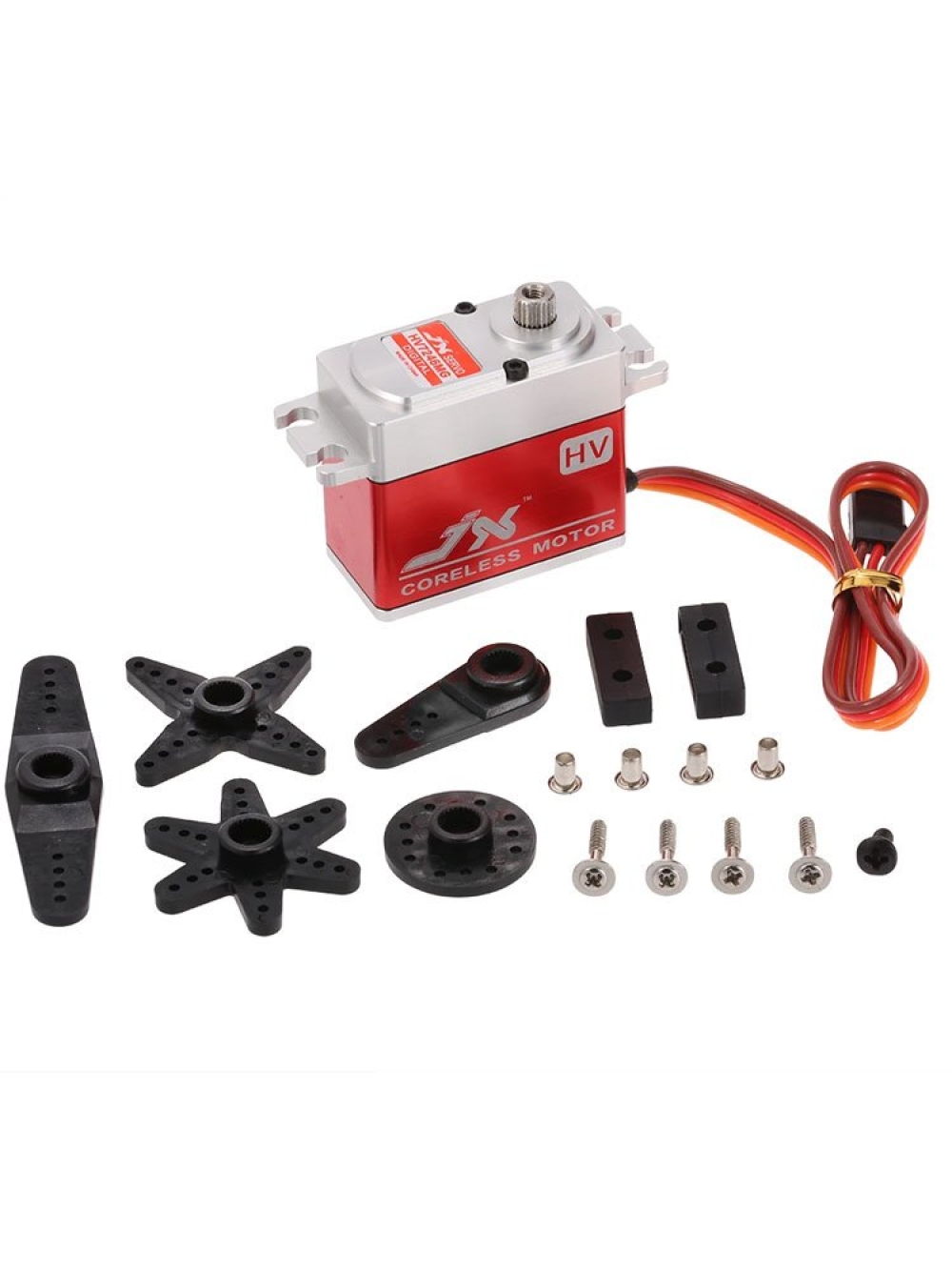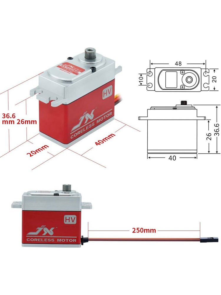 Цифровая сервомашинка стандартного размера JX PDI-HV7232MG с металлическим редуктором и алюминиевой центральной частью корпуса для лучшего охлаждения. High Voltage. Вес: 72 г, усилие на валу: 26.2 кг/см (6.0V), 31.5 кг/см (8.4V), скорость: 0.12 с/60° (6.0V), скорость: 0.09 с/60° (8.4V).